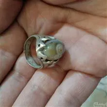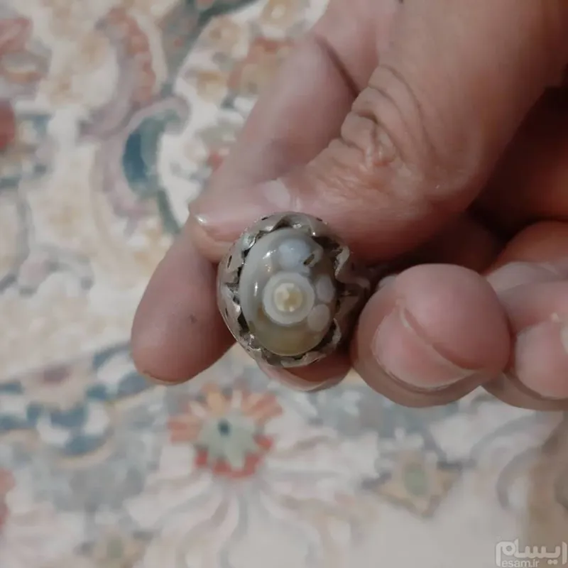 سنگ معدنی هست و داخل عکس معلوم هست که باباقوری هست ستگ معدنی اصیل و قدمت بالای 100 سالو رکاب روکش نقره هست ...