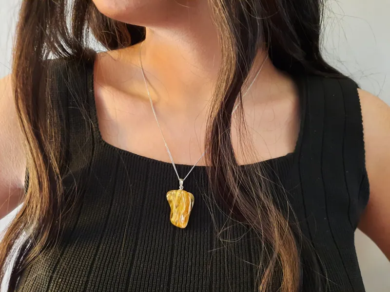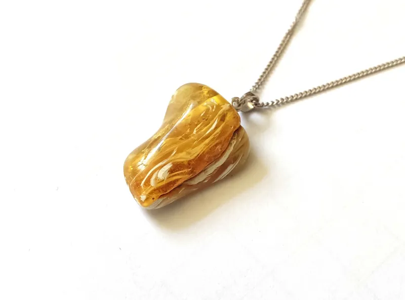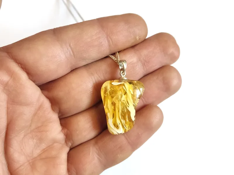 گردنبند کهربا بالتیک اصل درشت با نقره