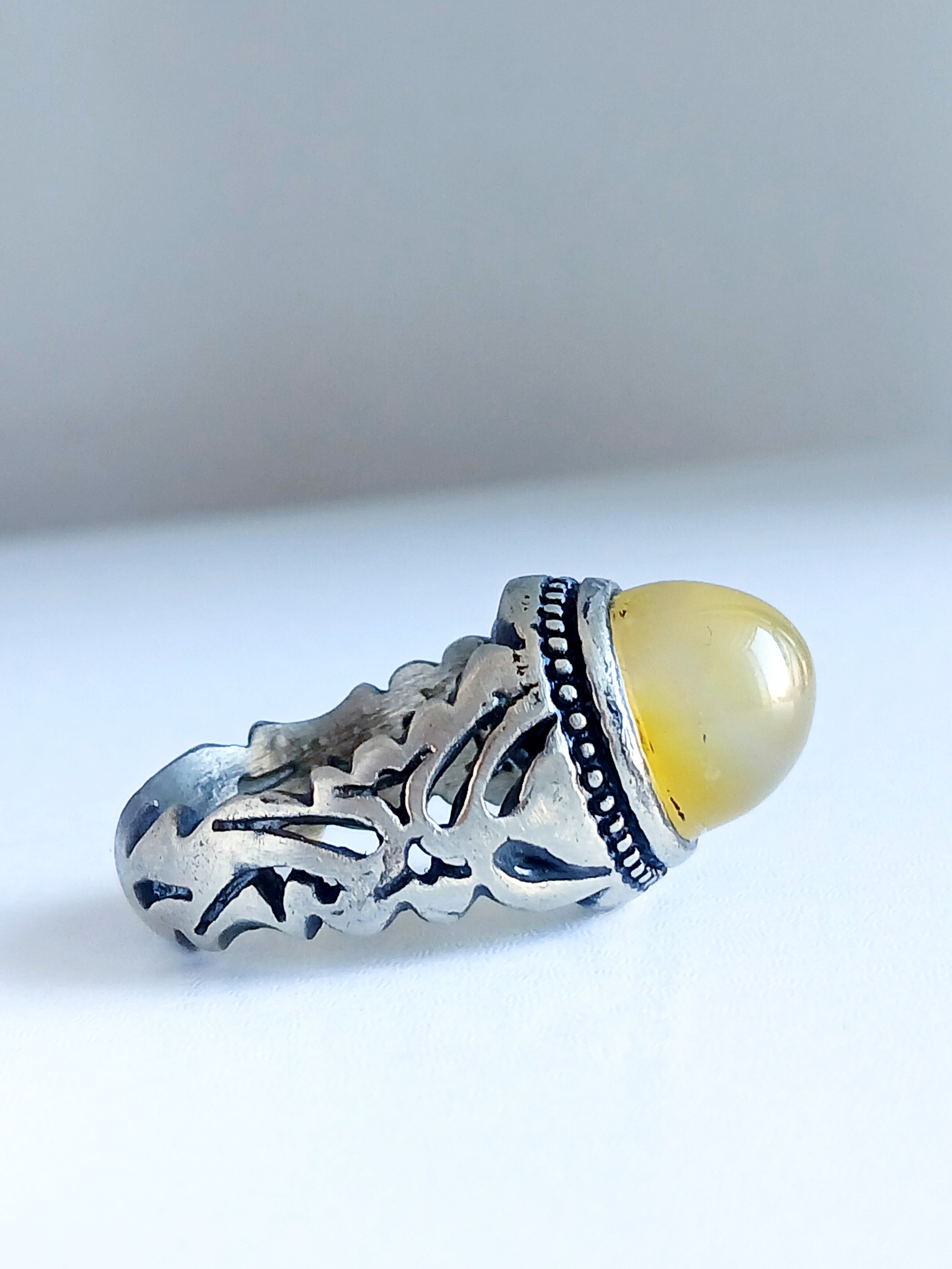 انگشتر نقره عقیق زرد حنایی زیبا کیفیت عالی
