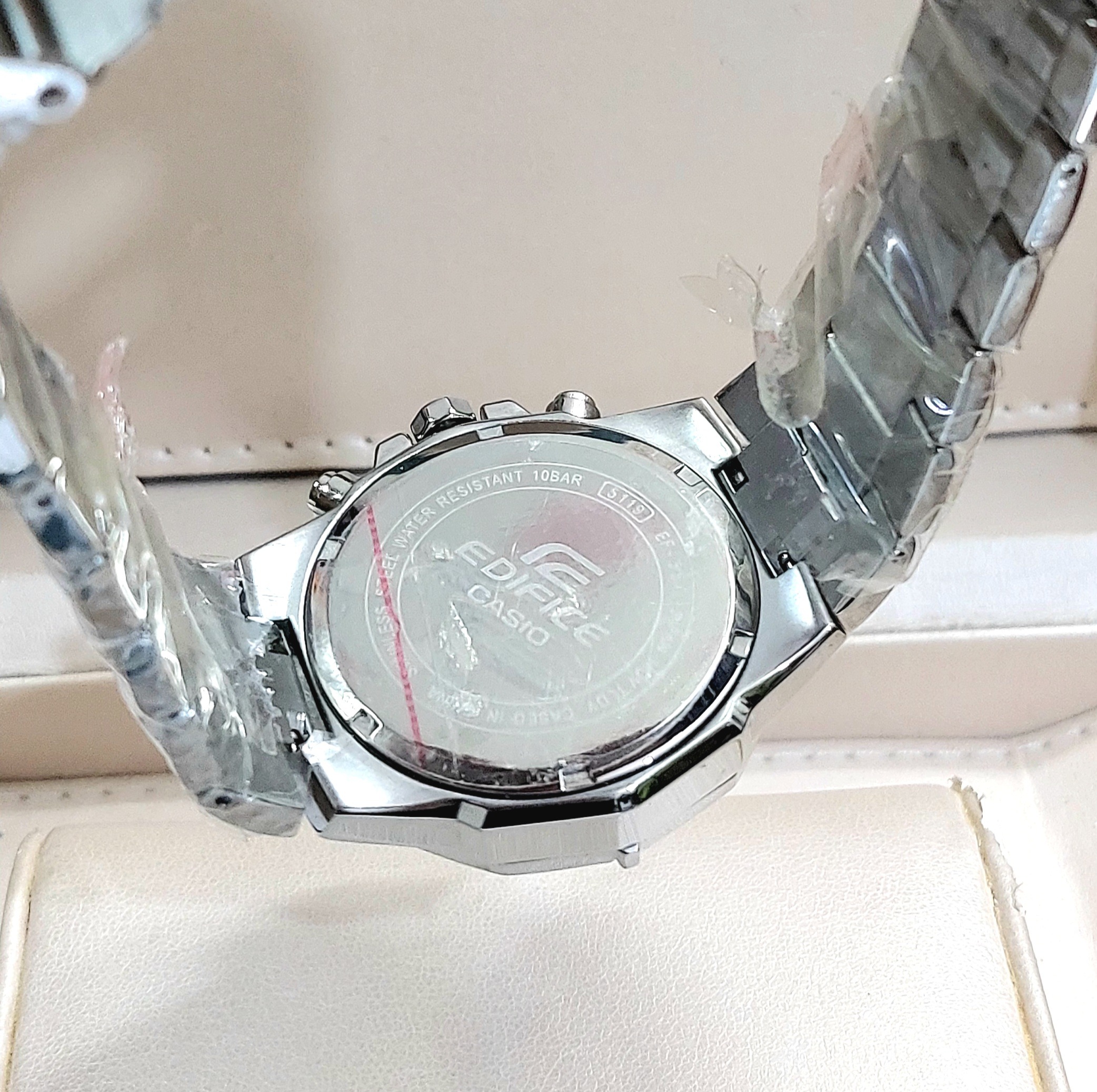برند CASIO بر روی صفحه و قفل بند و درب پشت ساعت حک شده میباشد