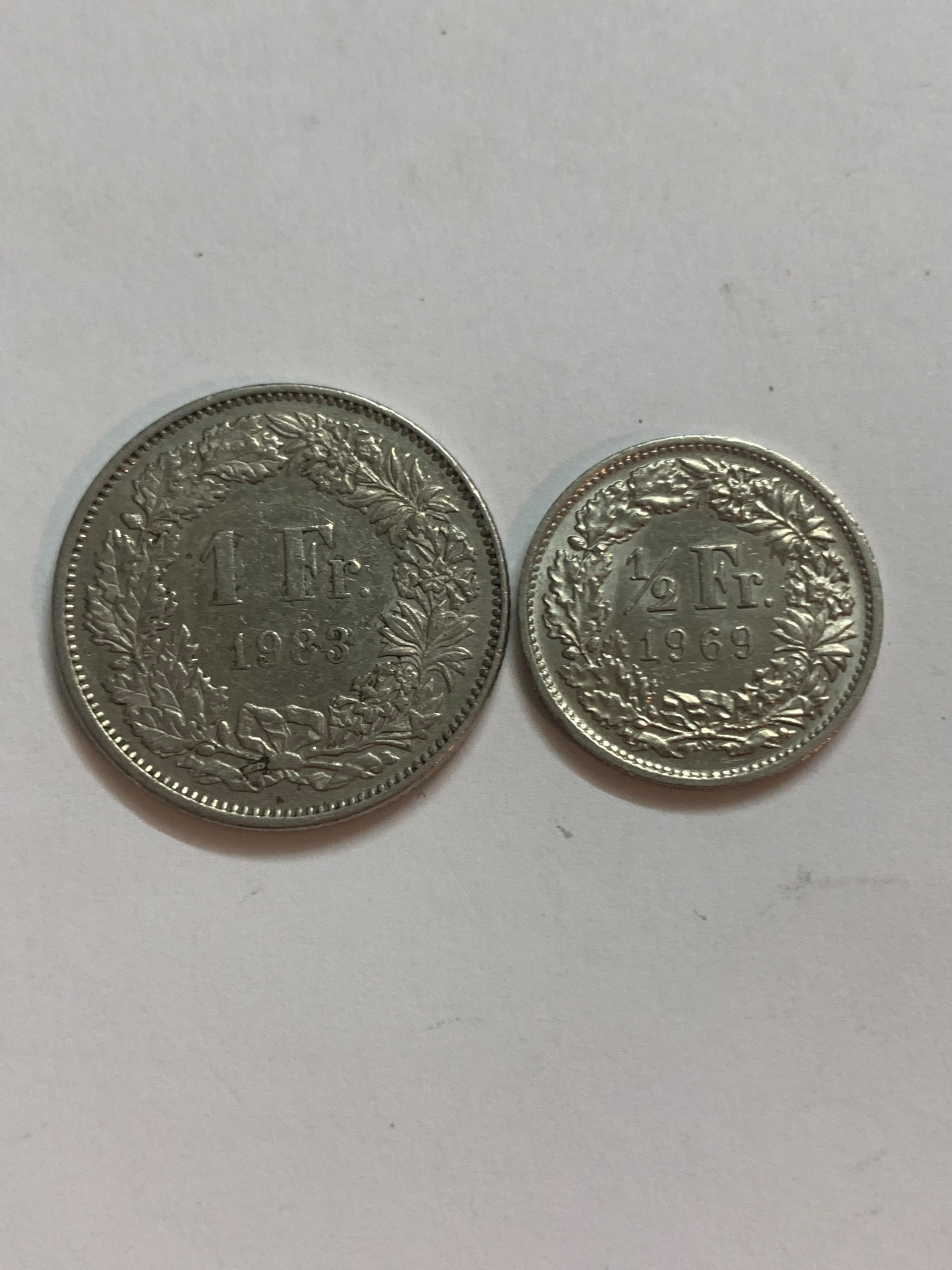 دوقطعه سکه کمیاب یک و نیم فرانک کشور سویی ( هلوتیکا)