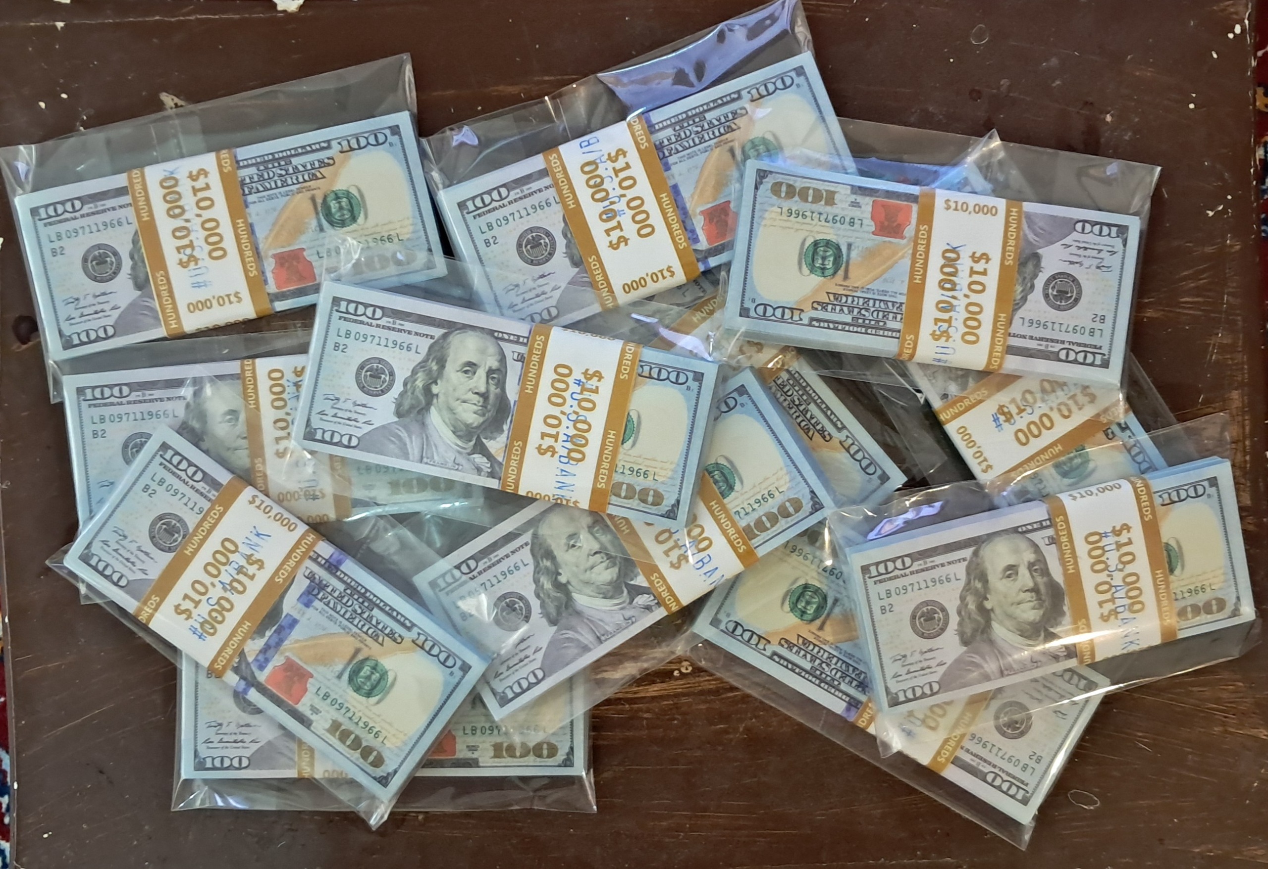 صد عدد دلار تزئینی سینمایی مدل 100 دلاری جدید آبی
