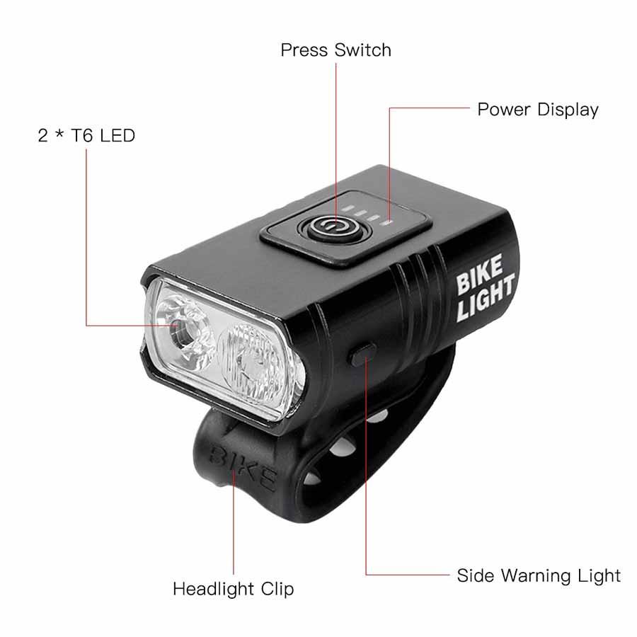 بدنه فلزی . شارژی . شدت نور در قویترین حالت حدود 1000 لومن . 6 حالت نور مختلف .نشانگر میزان شارژ باتری . حالت چرخش در چند جهت روی فرمان دوچرخه
