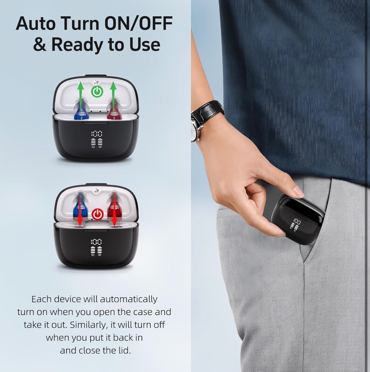 روشن/خاموش خودکار و تنظیم صدا: دستگاههای صوتی کاربرپسند دارای دکمههای سادهای برای تنظیم صدا هستند - دیگر نیازی به تنظیمات پیچیده نیست. دستگاه با باز کردن کیس و بیرون آوردن آن به طور خودکار روشن میشود. به طور مشابه، با قرار دادن مجدد آن در داخل و بستن درب، خاموش میشود. فقط دستگاه صوتی را روشن کنید و فوراً به مکالمات متصل شوید.