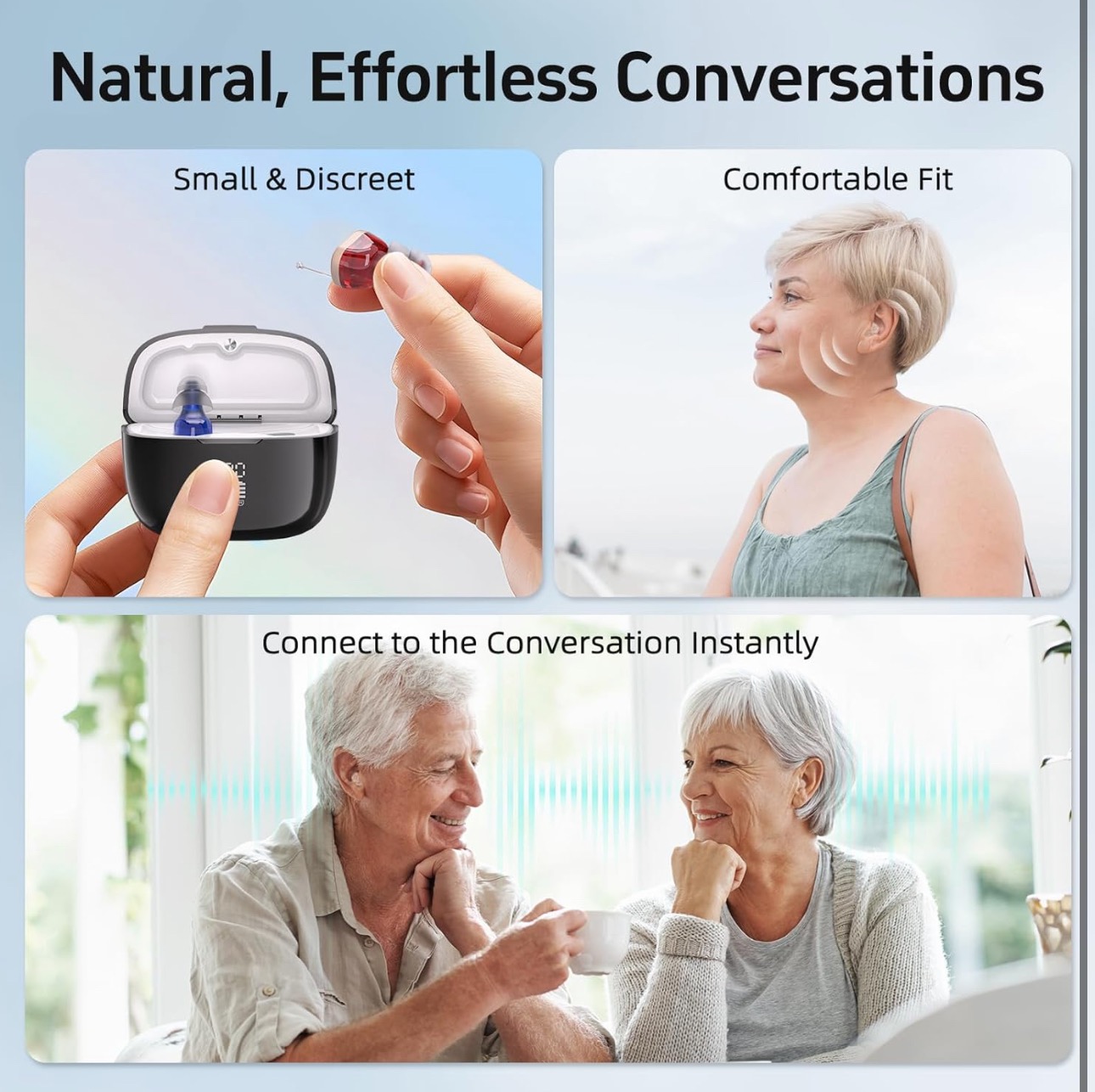 کیفیت صدای واضح و طبیعی: تراشه هوشمند DSP داخلی، نویز پسزمینه را کاهش داده و وضوح گفتار را افزایش میدهد. این دستگاههای صوتی امکان اتصال آسان به مکالمات در محیطهای مختلف را فراهم میکنند و گوش دادن روزانه - مانند تماشای تلویزیون، پاسخ به تماسها، لذت بردن از موسیقی - را در دسترس نگه میدارند.