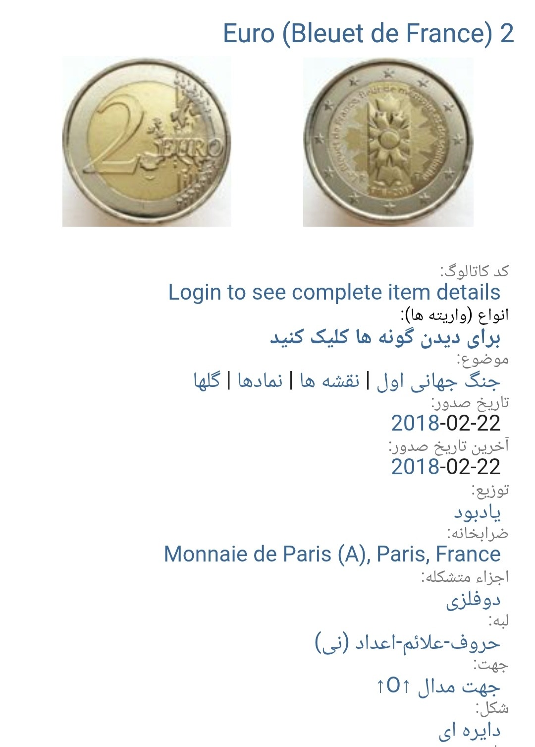 سکه 2یورو یادبودی نایاب فرانسه 2018(701))