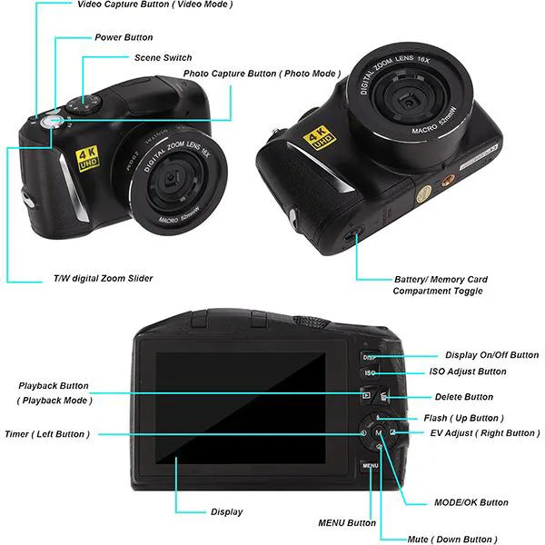 دوربین دیجیتال مدل 4K Ultra HD 48MP 16X IPS