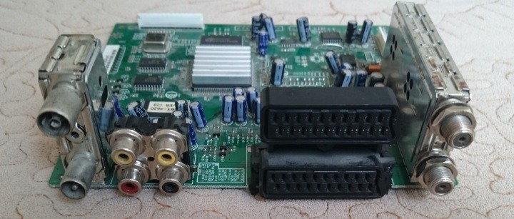 برد کاملا سالم هستش و قطعات آی سی و ترانزیستور و سوکت و جکهای مختلف هستش