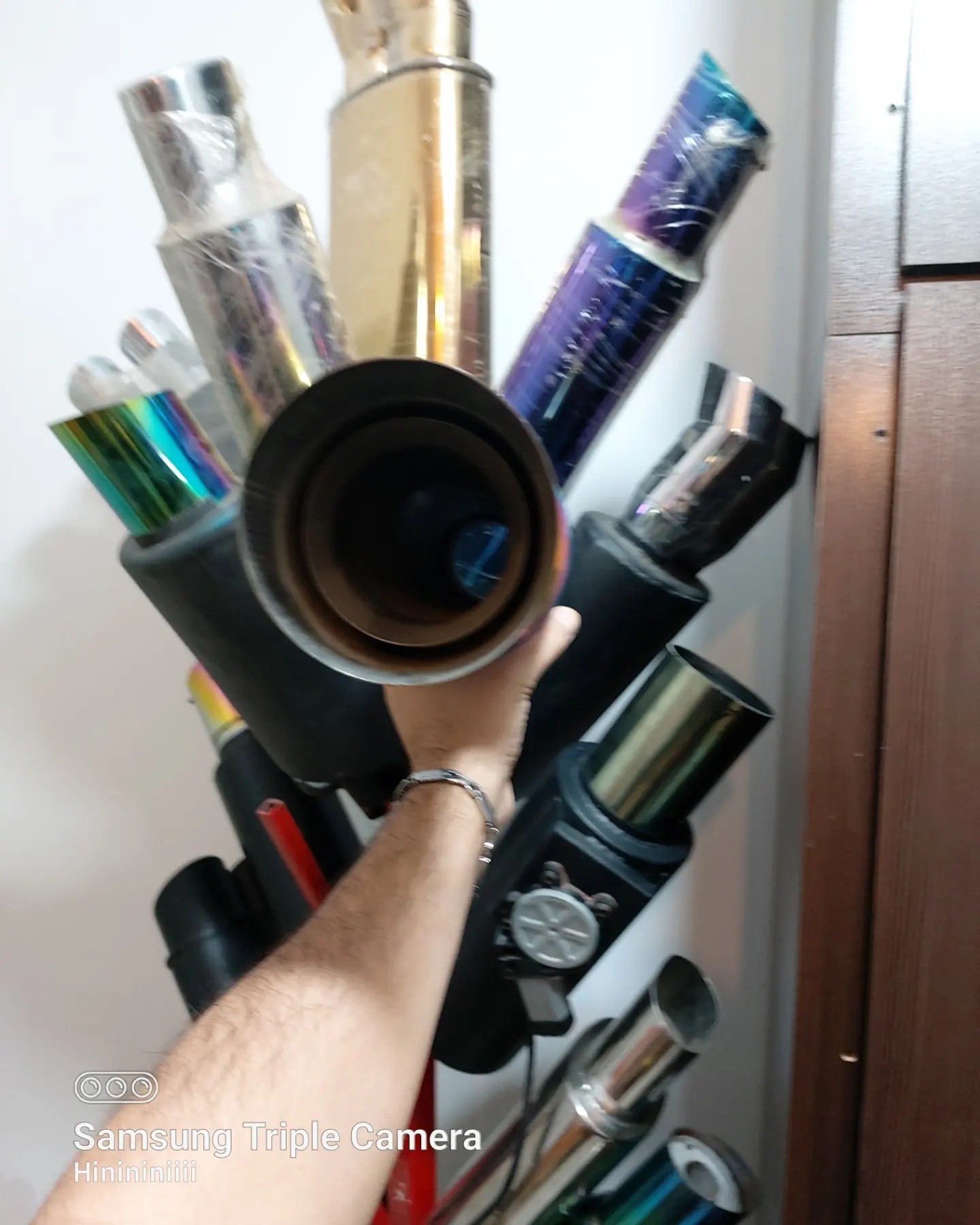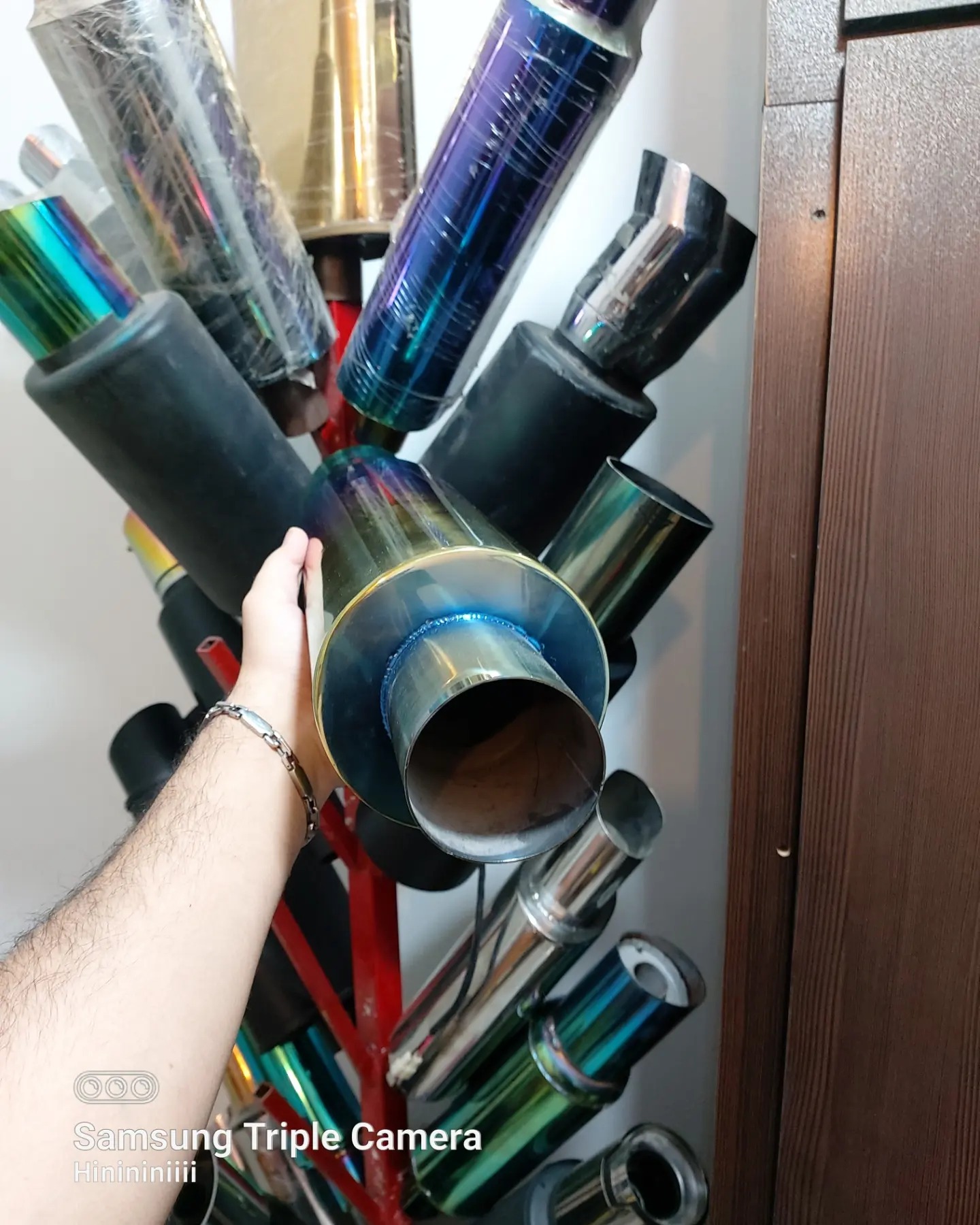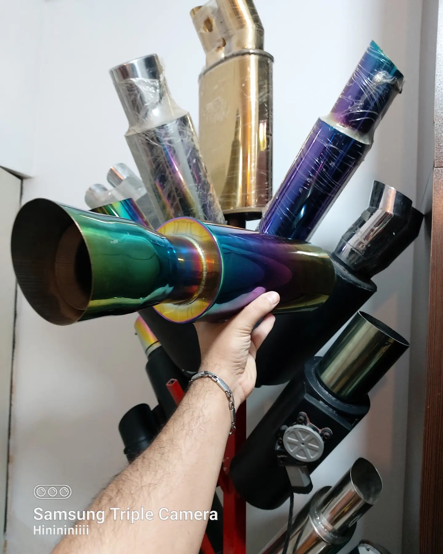 منبع اگزوز استیل ضد زنگ کله3بعدی هفت رنگ ثابت طول 52سانت قطر ورودی 6سانت عرض11سانت