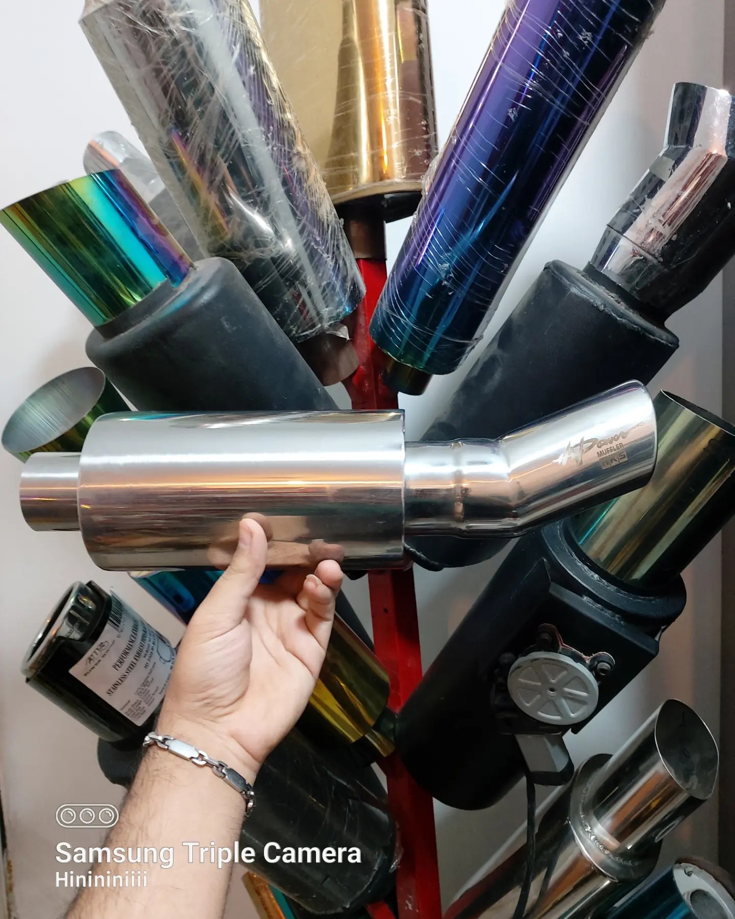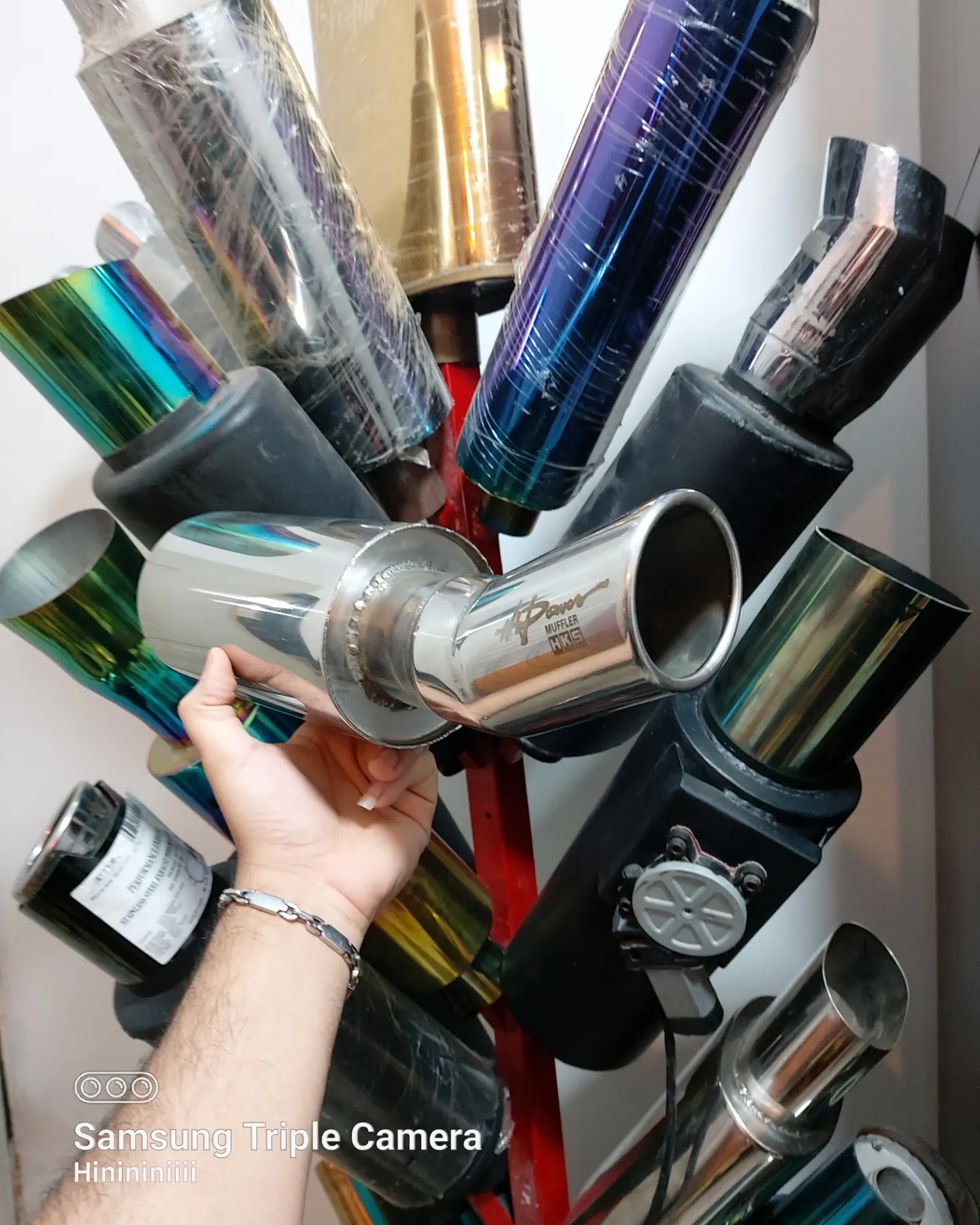 منبع اگزوز برند HKS اصلی کاملا استیل ضدزنگ سرشکاری صدای فوق العاده ریسی طول منبع 38 سانت عرض11 سانت قطر ورودی 5سانت