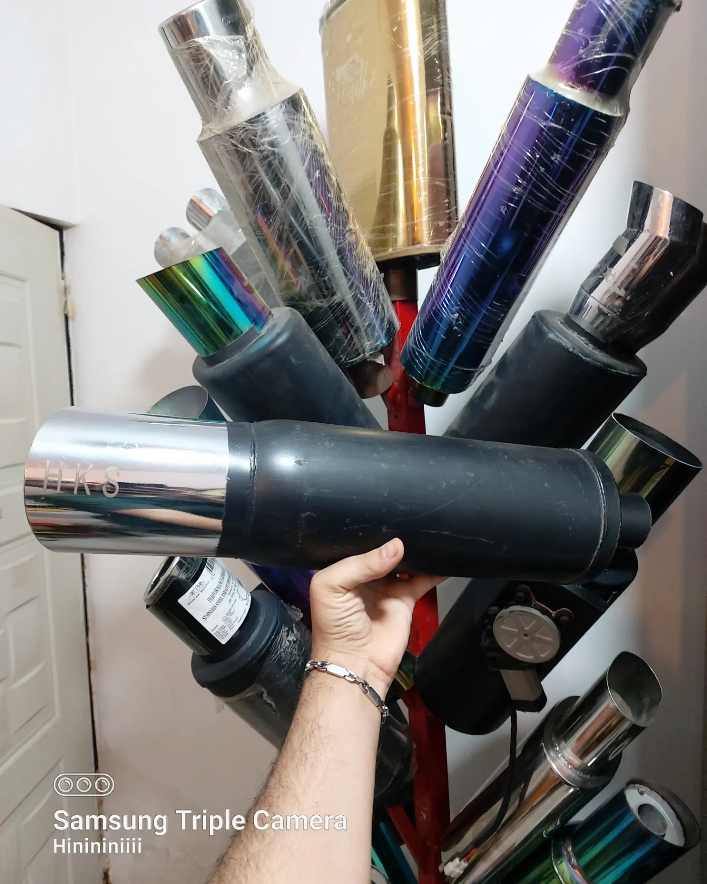 منبع اگزوز برند hks سایلنسردار سری ضدزنگ صدایی بم ریسی طول50 سانت قطرورودی 5سانت