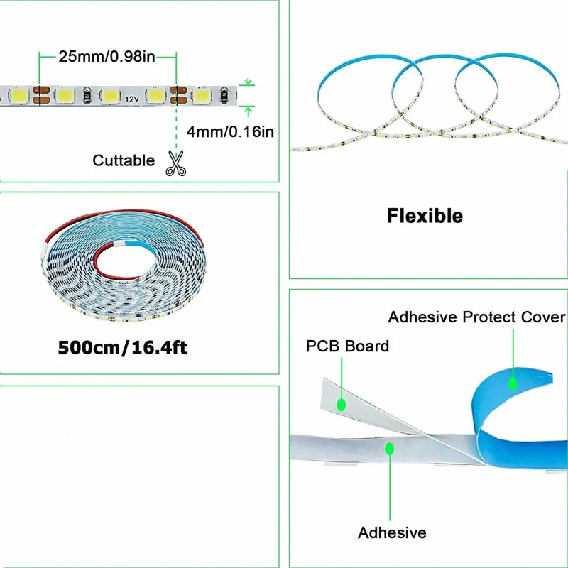 [عرض 5 میلیمتر]: عرض این نوار نور فقط 5 میلیمتر است، در حالی که عرض نوار نور معمولی 10 میلیمتر است. این نوار نور نه تنها از نوارهای نور معمولی روشنتر است، بلکه در فضا نیز صرفهجویی میکند.