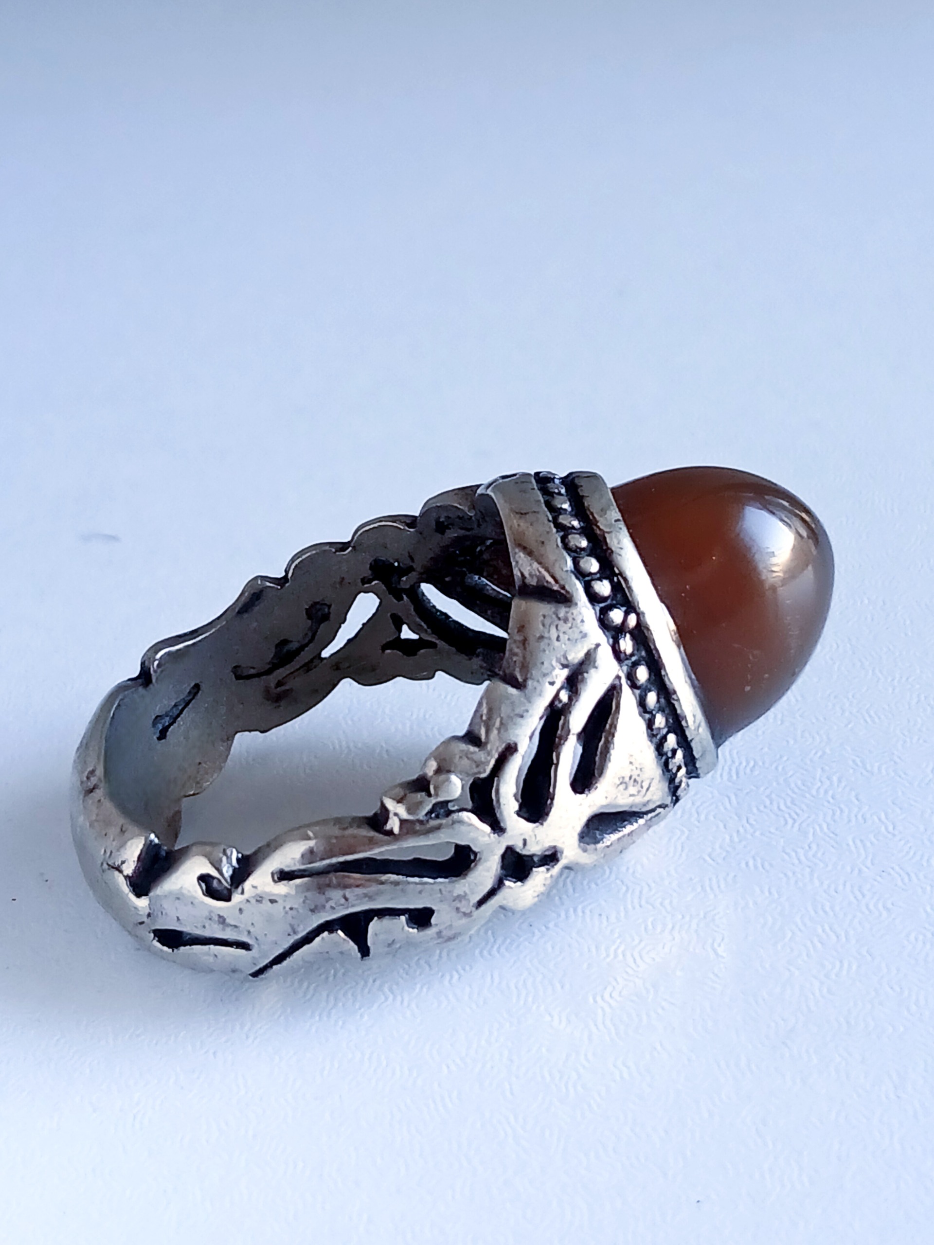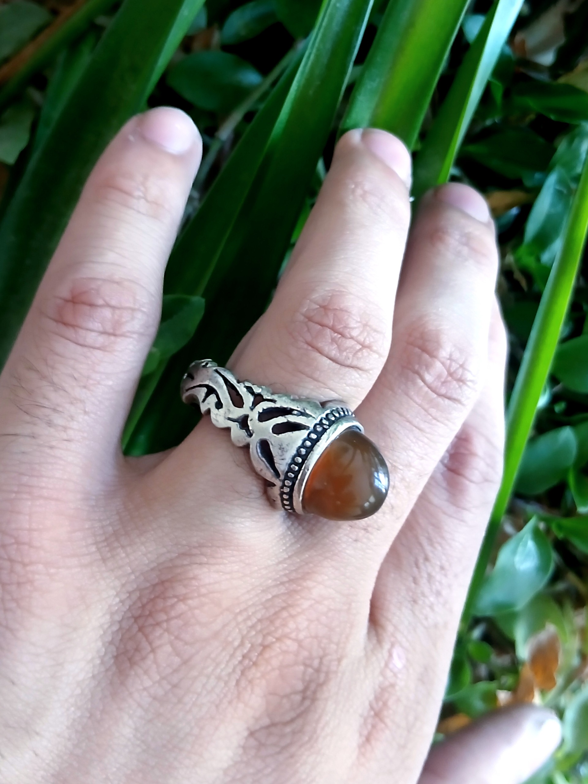انگشتر نقره دست دوم عقیق جزع خرمایی کیفیت فوق العاده زیبا باسایز 64 وزن:13گرم