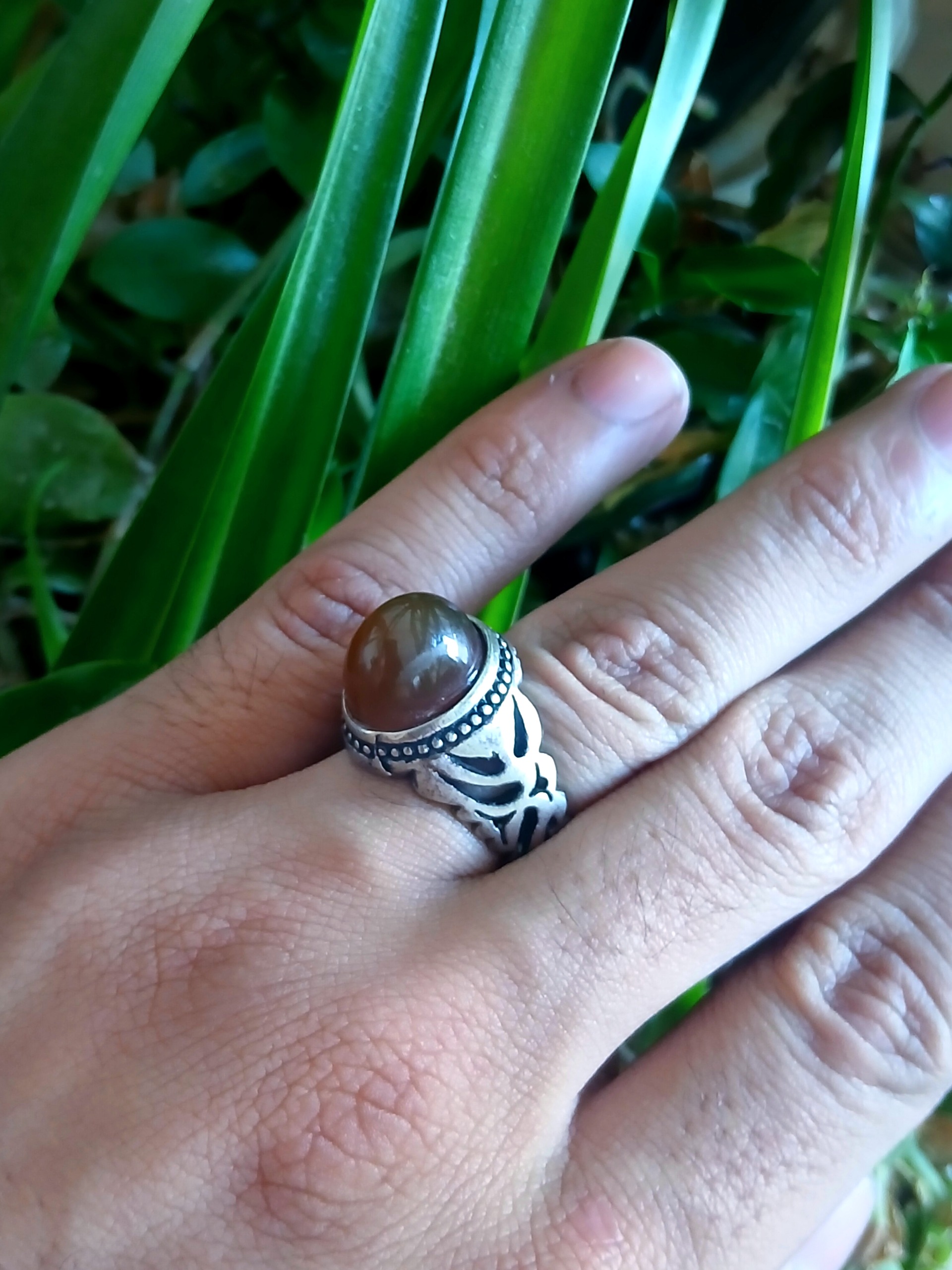انگشتر نقره عقیق جزع خرمایی کیفیت فوق العاده