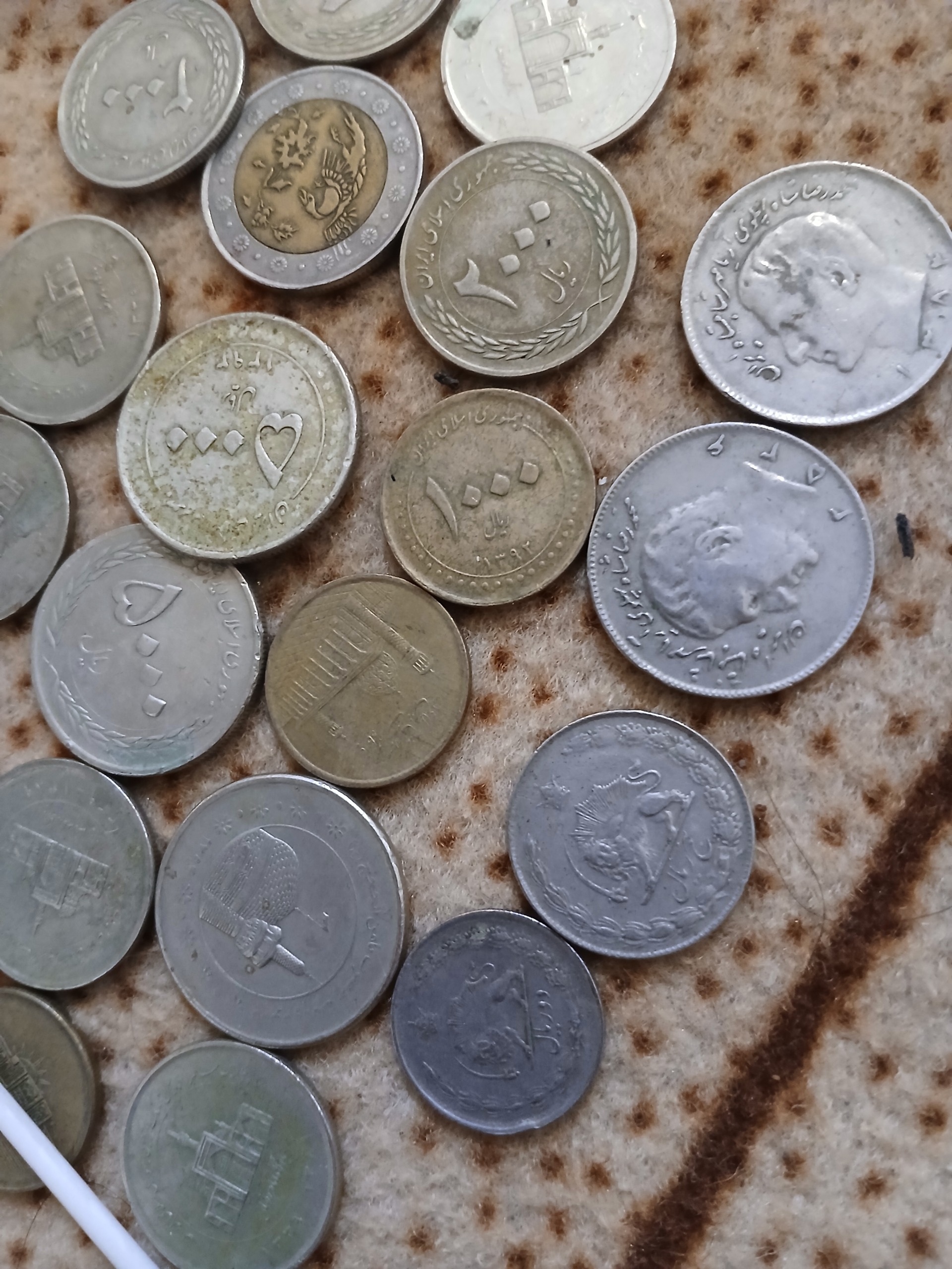 مقداری سکه ایرانی شاهی و ریال  و فنگ و تفگ جاکلیدی و تسبیح اینا همه باهم 2تومن
