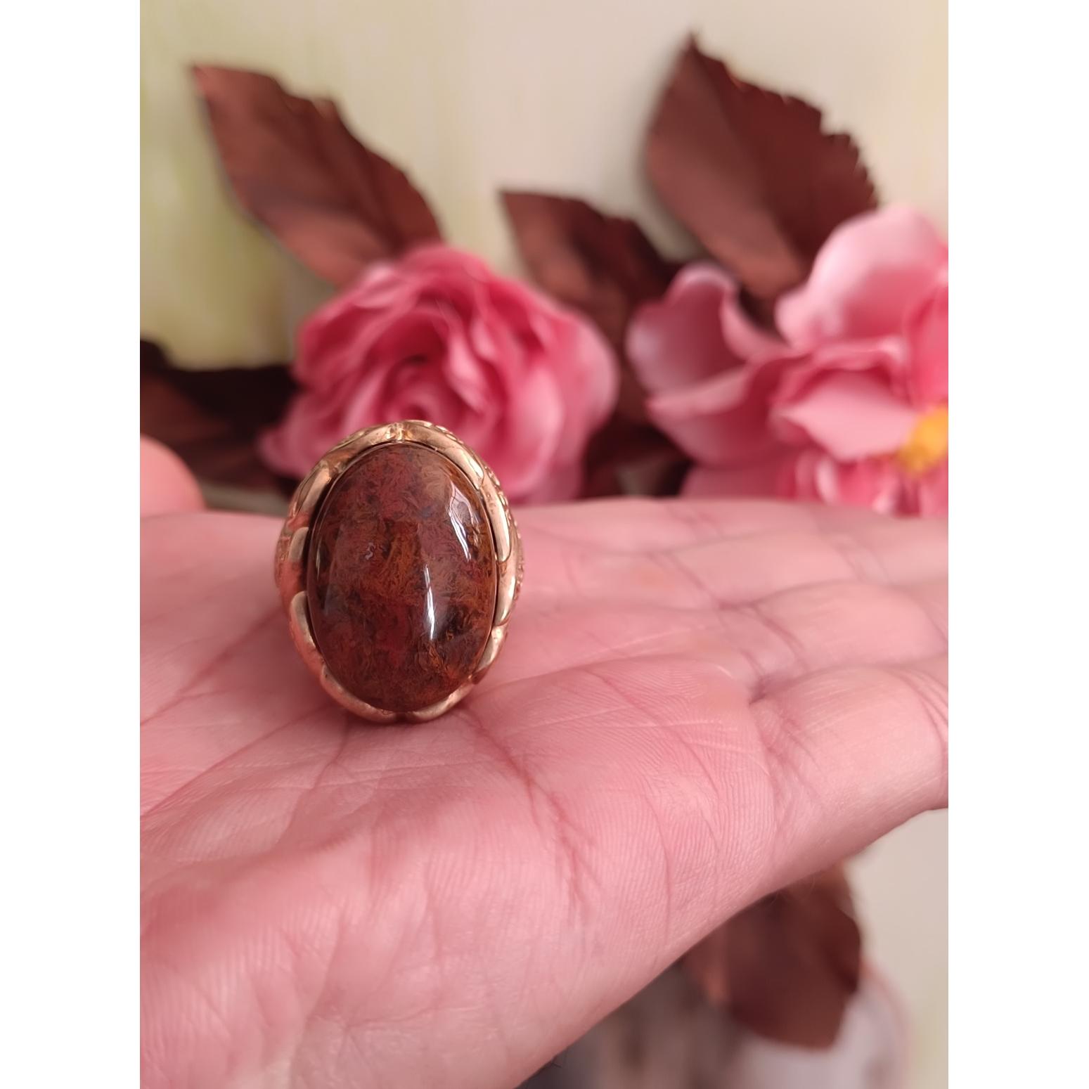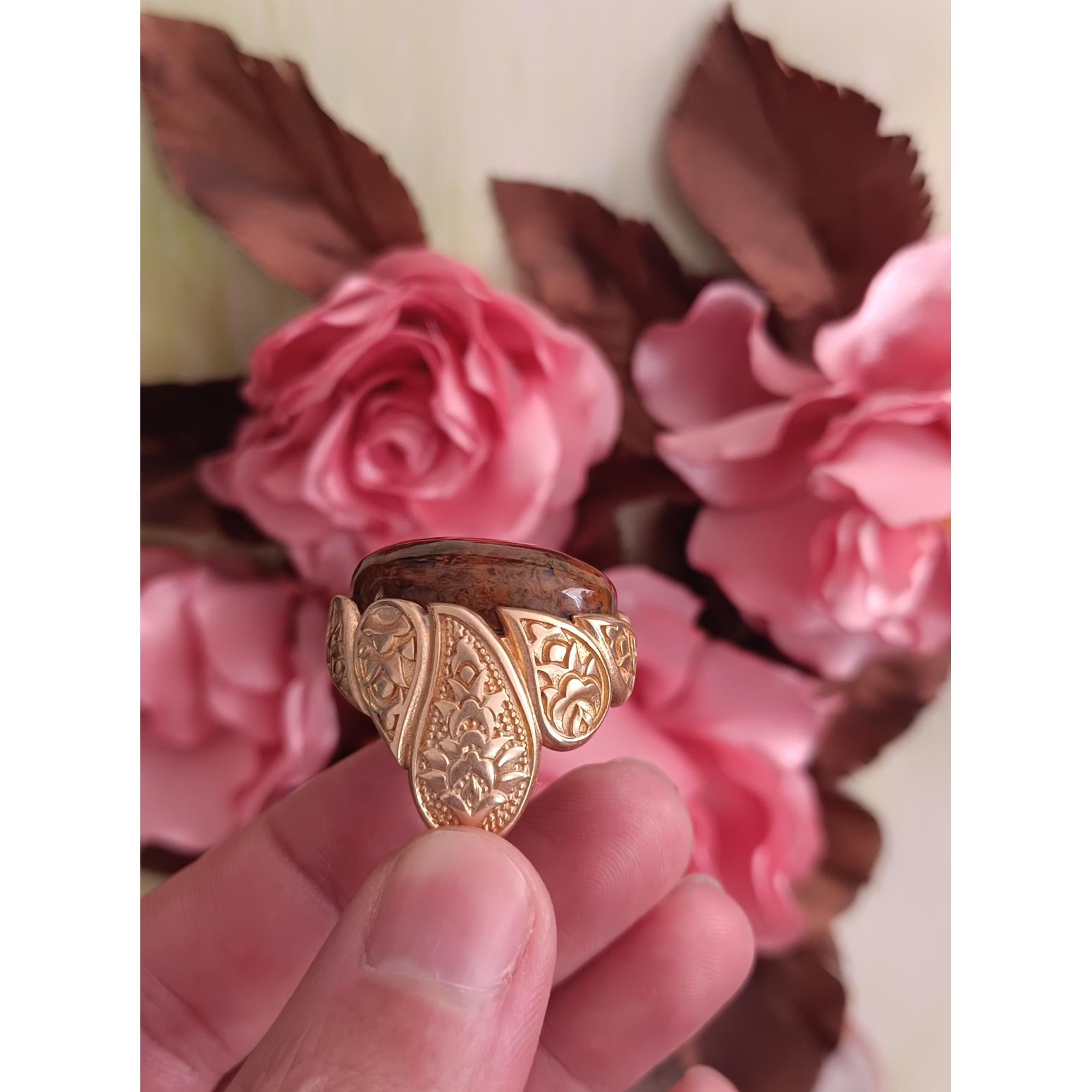 انگشتر طلاروس با نگین عقیق پاییزه فوق العاده زیبا ، رنگ ثابت ، فاقد هرگونه حساسیت پوستی مخصوص افرادی که انگشتر درشت دوست دارند