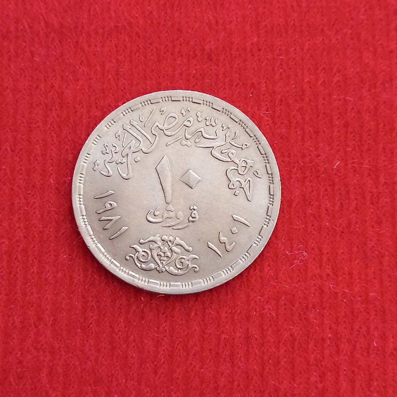 سکه زیبای 10 قروش یادبودی مصر 1981