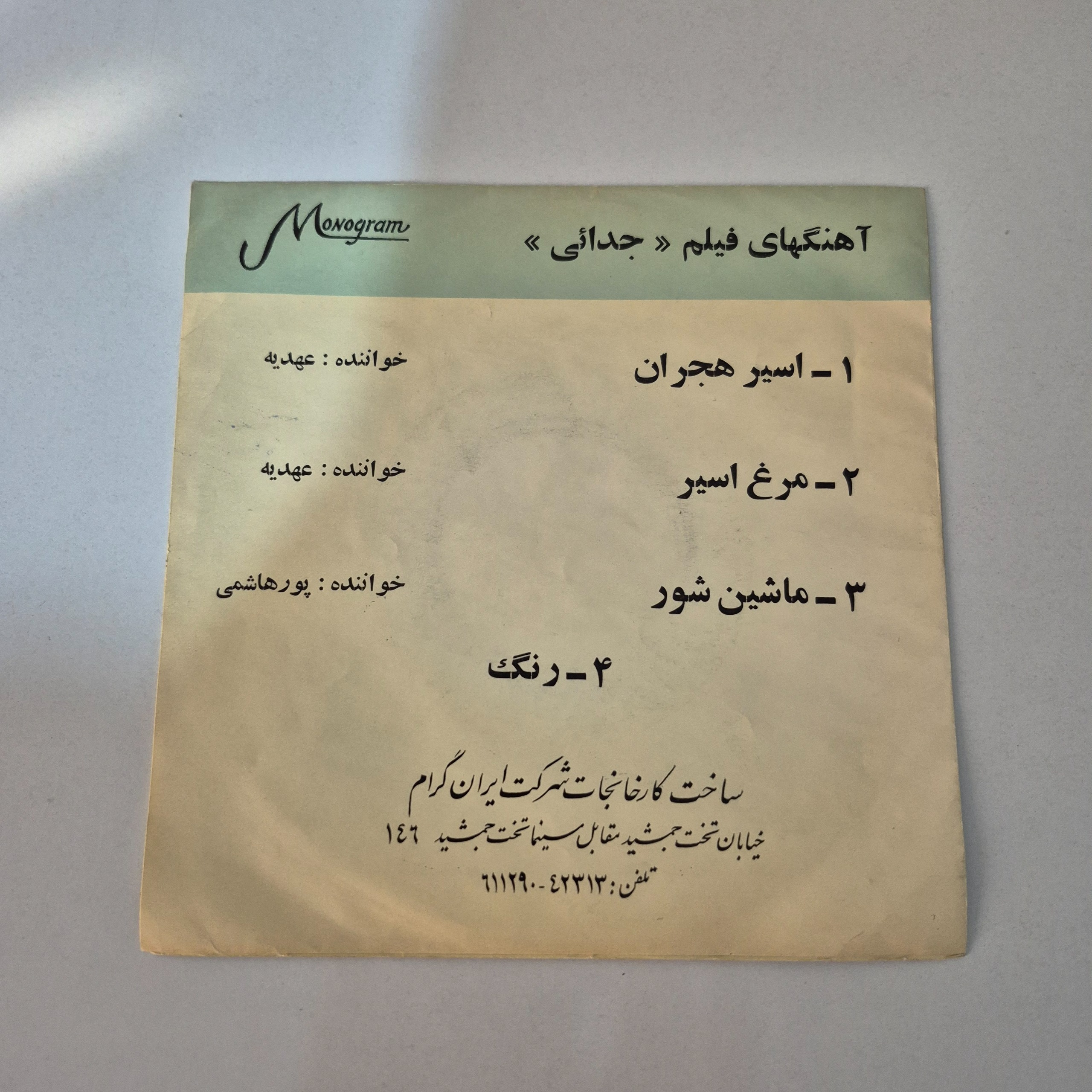 صفحه گرام 45 دور عهدیه آهنگهای فیلم جدایی