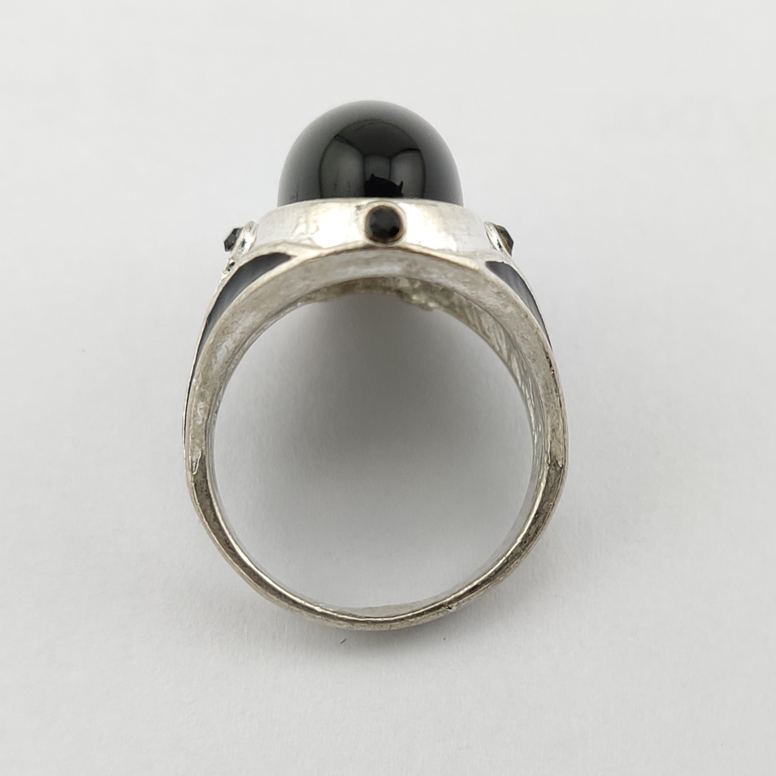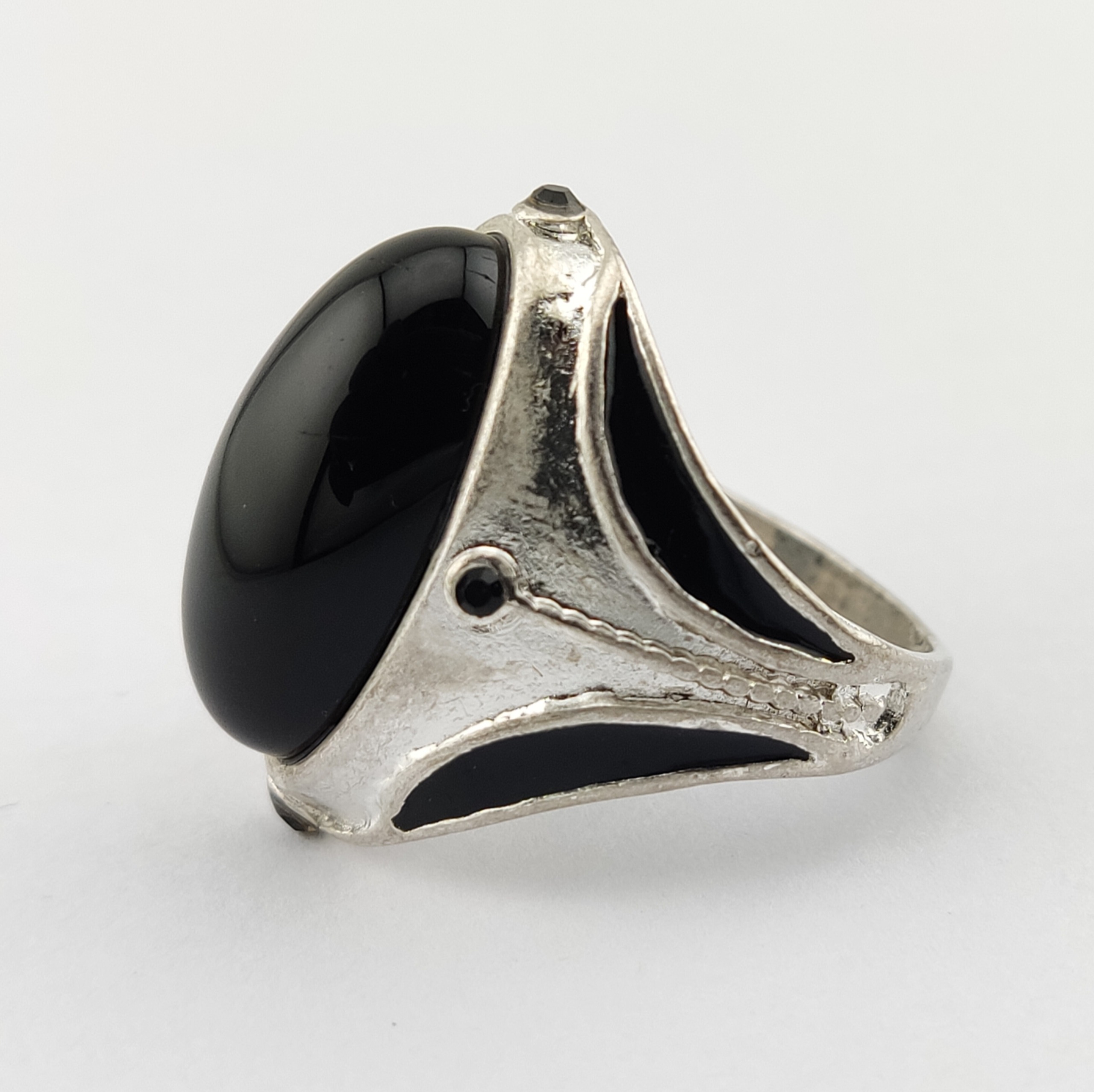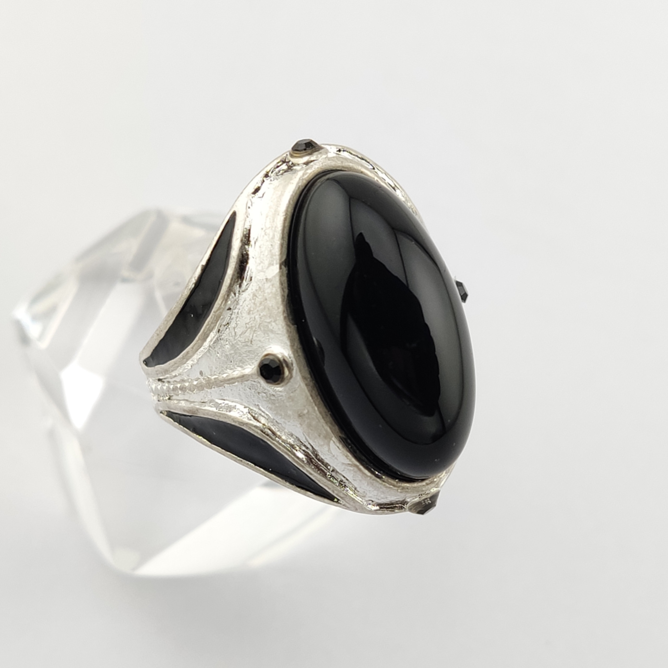 انگشتر اونیکس مشکی درشت بادامی رکاب رنگی خوشدست