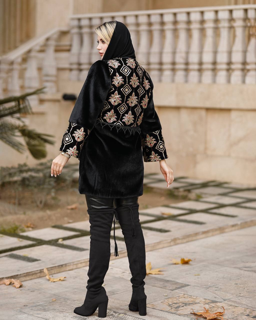 جنس: پایین تنه خز،بالاتنه مخمل گلدوزی
