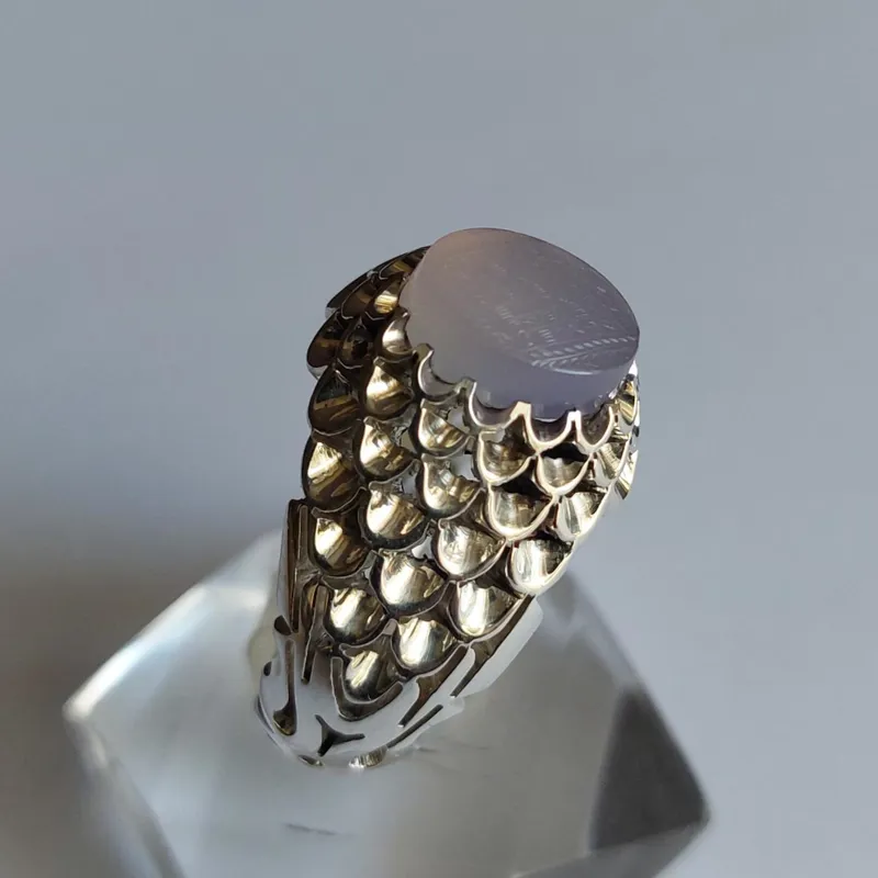 انگشتر عقیق سوسنی یمنی منقش به صد اسماء با امضاء سید عباس ضابطی که معرف حضمر همه دوستان هست