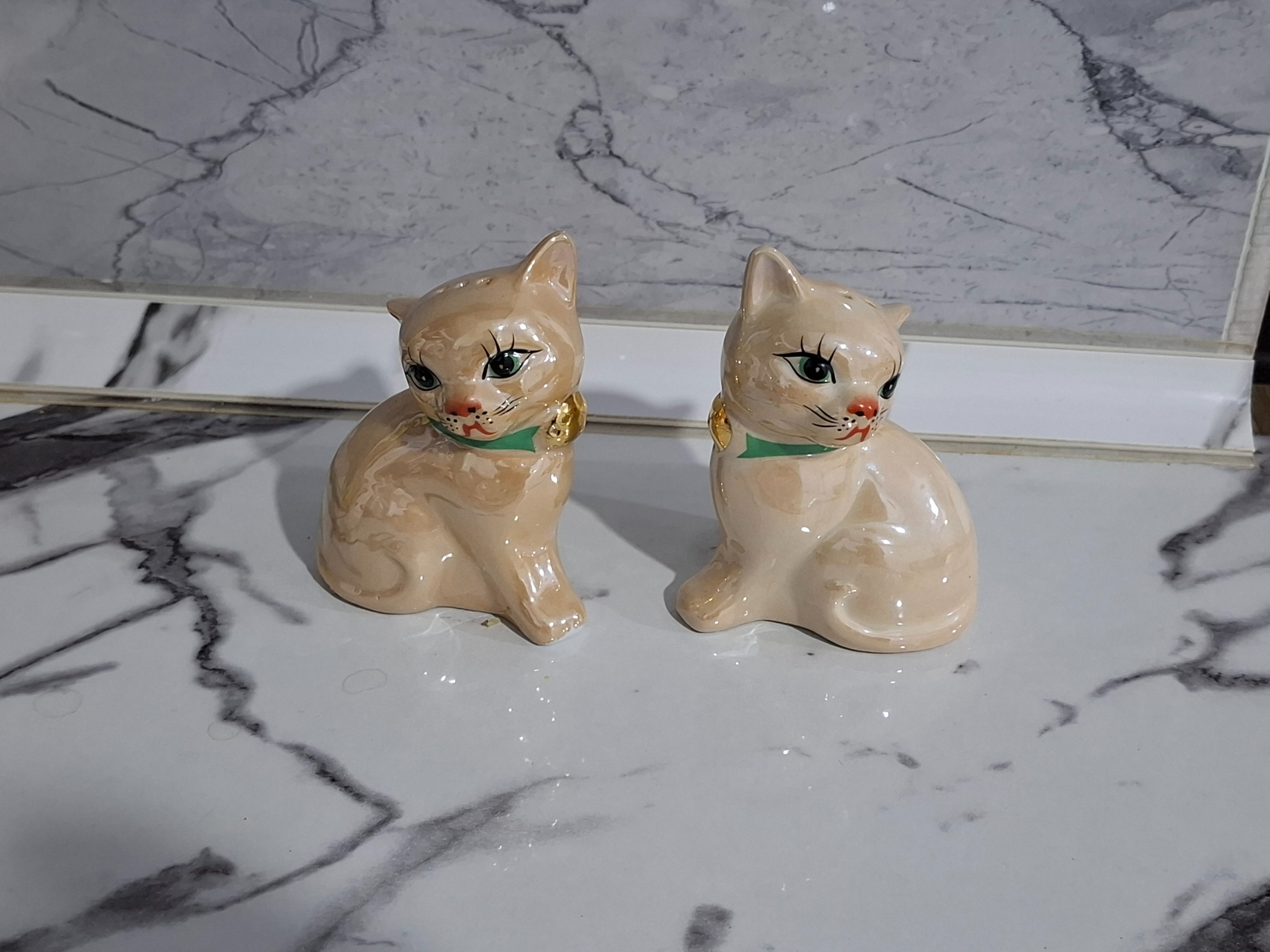 دو عدد نمکدون قدیمی گربه جنس چینی