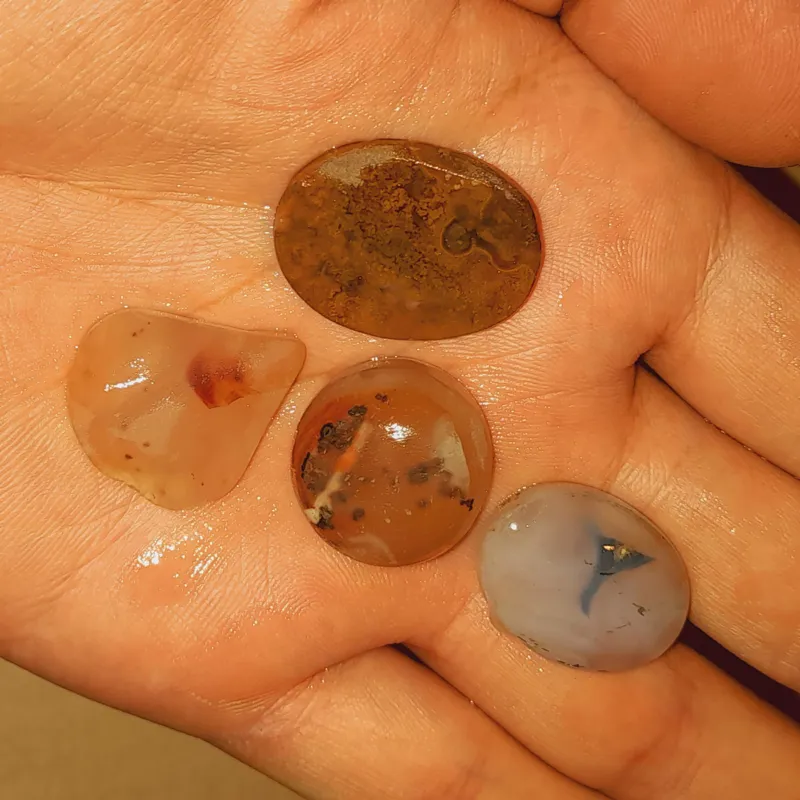 چهار قطعه سنگ...یک عدد عقیق شجر کبود با کلمه انگلیسی Y
