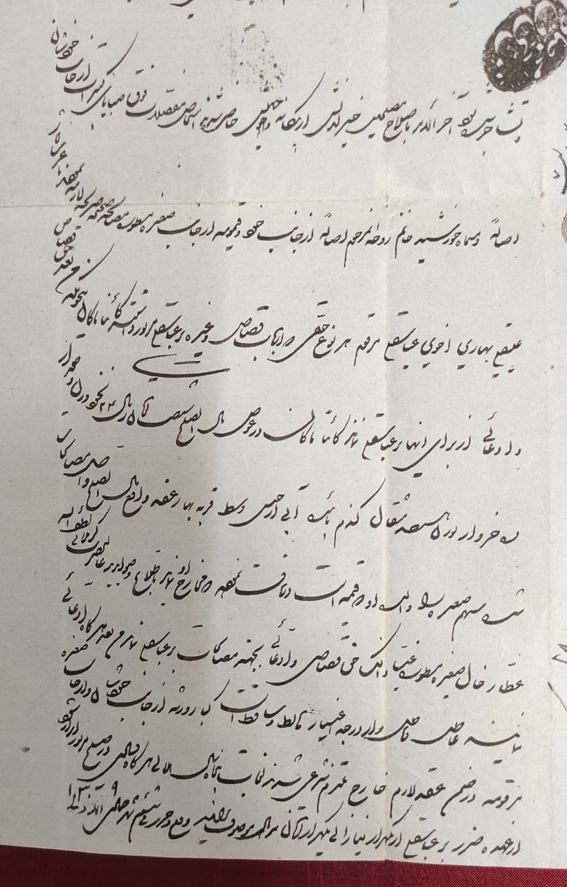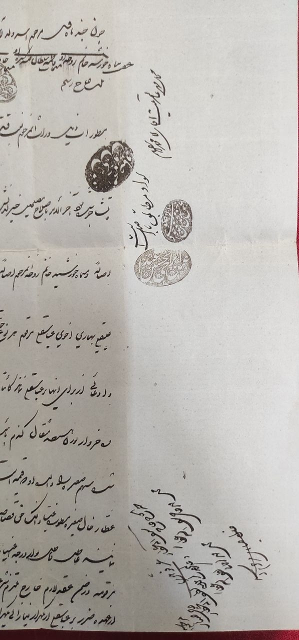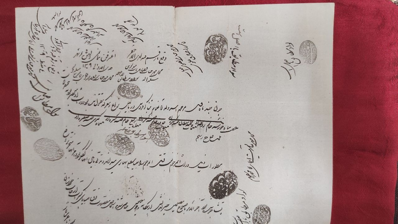 مصالحه نامه حکومتی با مهر برجسته شیر و خورشید در بالای سند با موضوع مهم