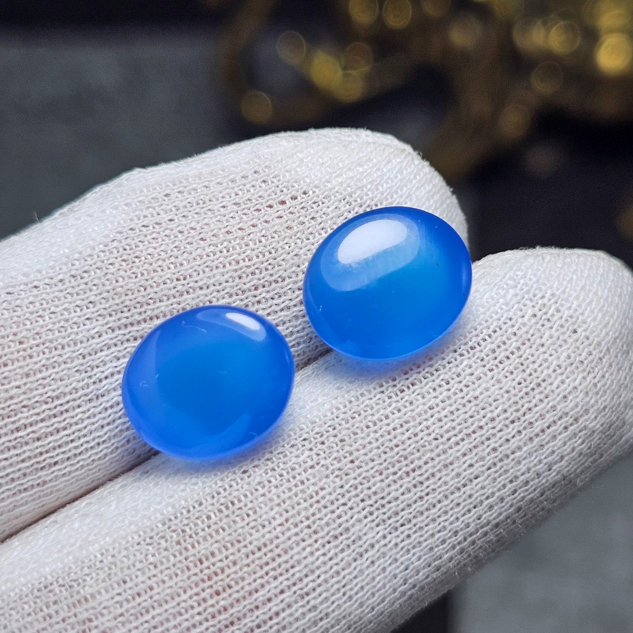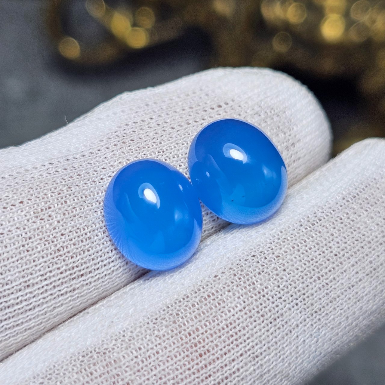 جفت نگین سنگ عقیق آبی معدنی کد 36723