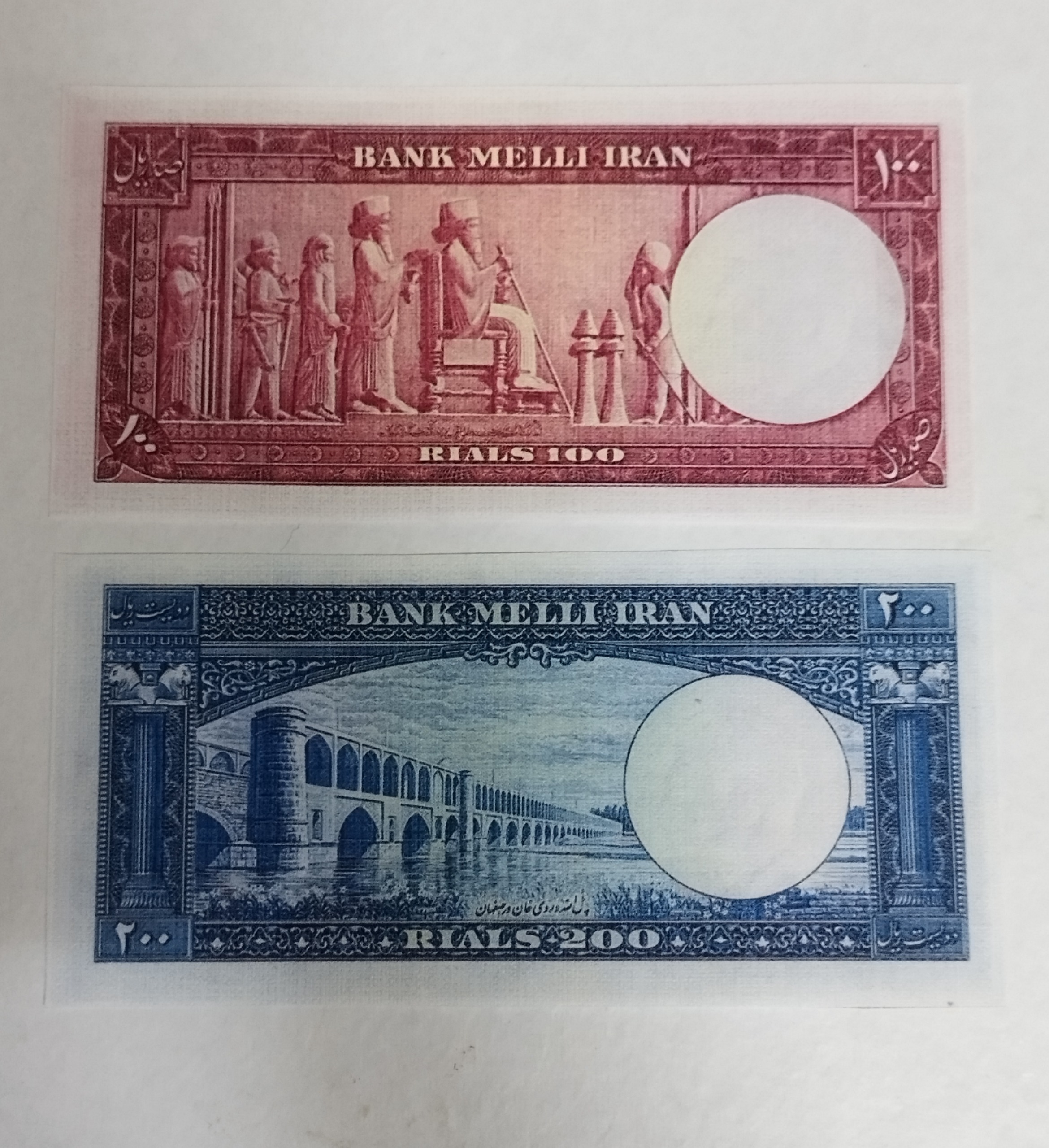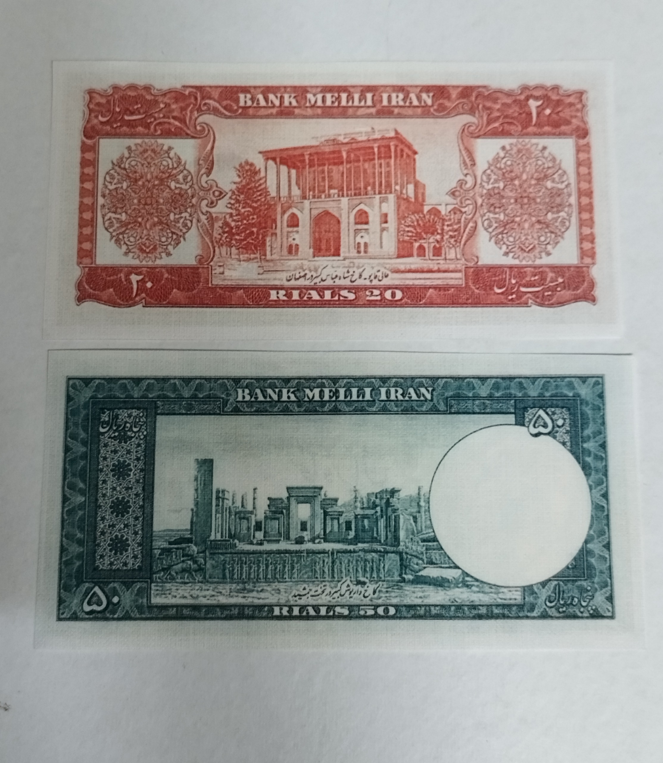 4 عدد اسکناس فانتزی و طرح از دوران پهلوی دوم