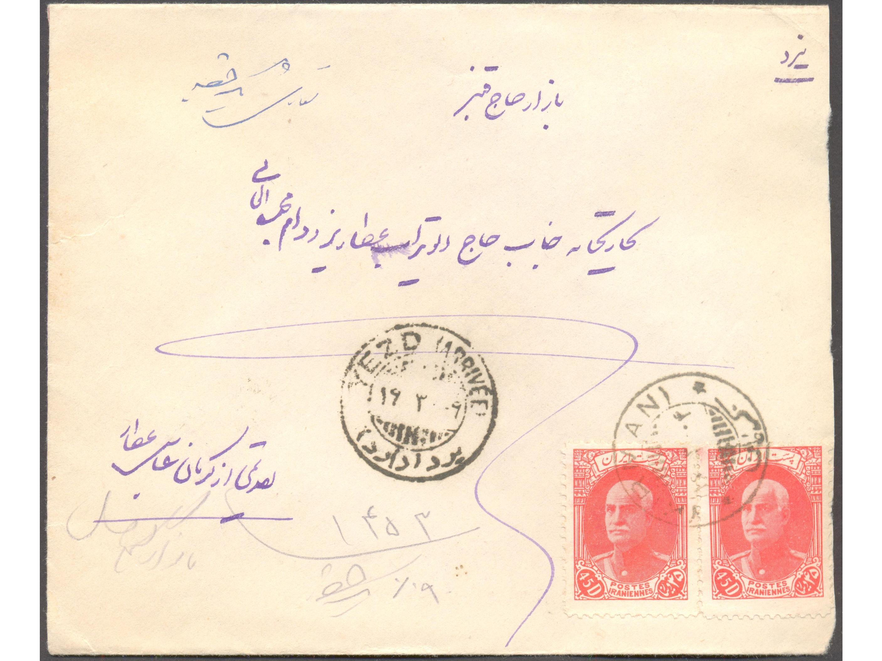 پاکت با دو تمبر 45 دینار از کرمان به یزد