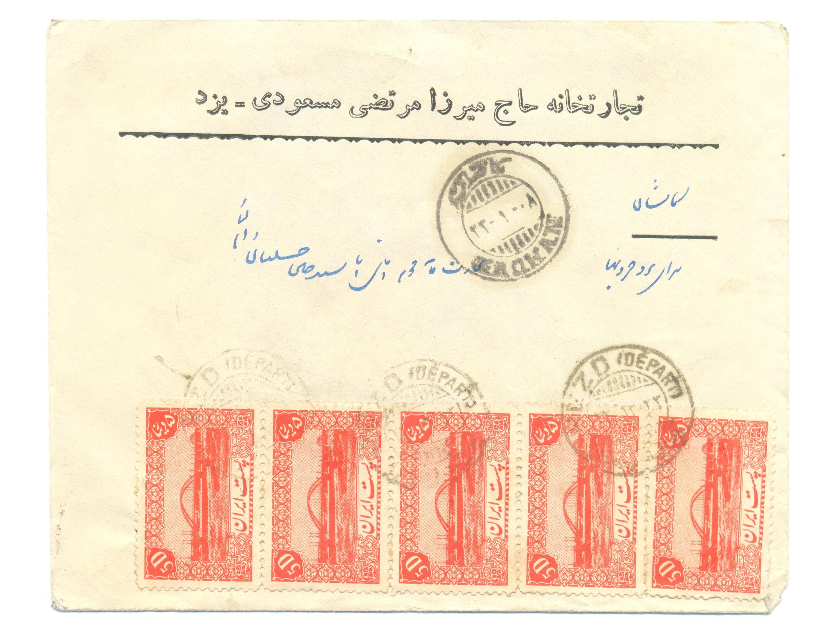 پاکت با باند 5 دینار سری پستی دوم پهلوی