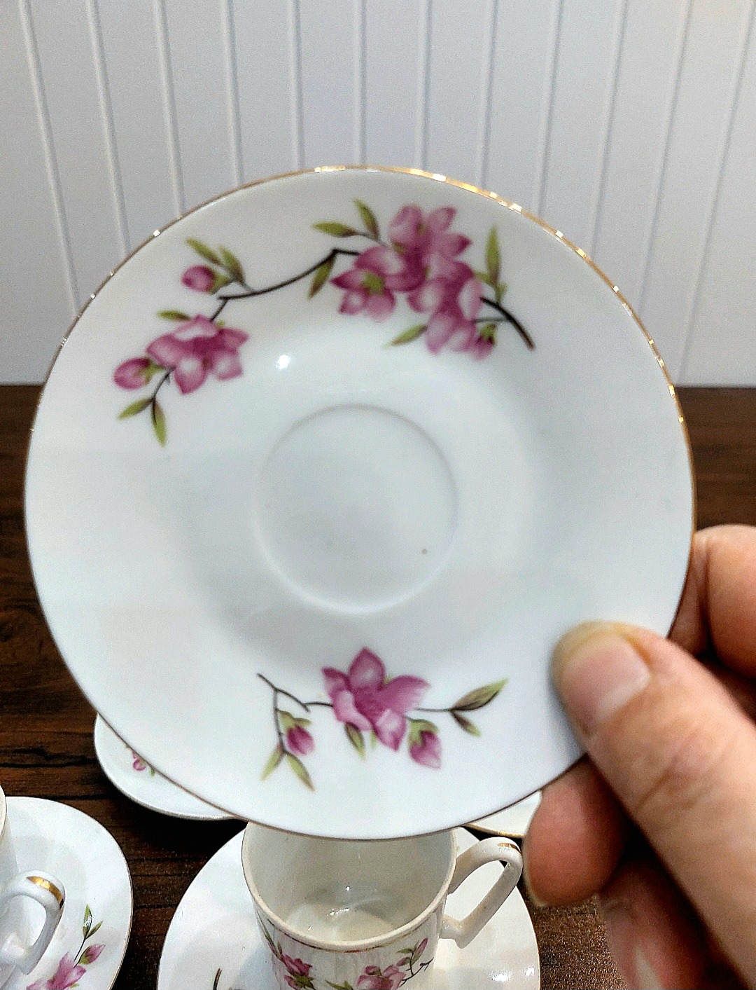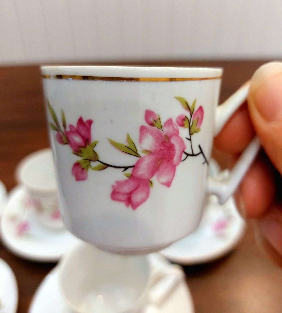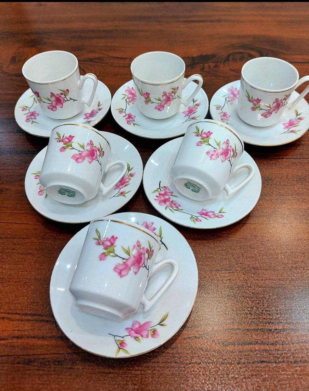 یک دست فنجان نعلبکی بسیار زیبای شکوفه چین