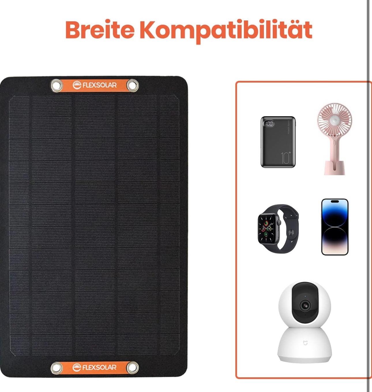 پنل خورشیدی USB: شامل 2 عدد پنل خورشیدی کوچک و 1 کابل موازی USB. هر پنل دارای پورت خروجی USB-A (حداکثر 5 ولت/1 آمپر) است که میتواند مستقیماً در نور خورشید آیفون، دوربین امنیتی، چراغ قوه و سایر دستگاههای کوچک شما را شارژ کند. همچنین میتواند اتصال بین پنل خورشیدی را برای انجام پروژههای DIY مانند شارژ فن USB برای مرغداری کوچک و غیره برقرار کند.