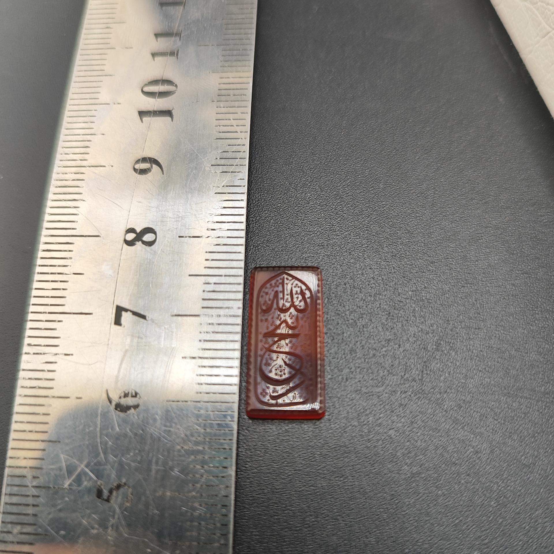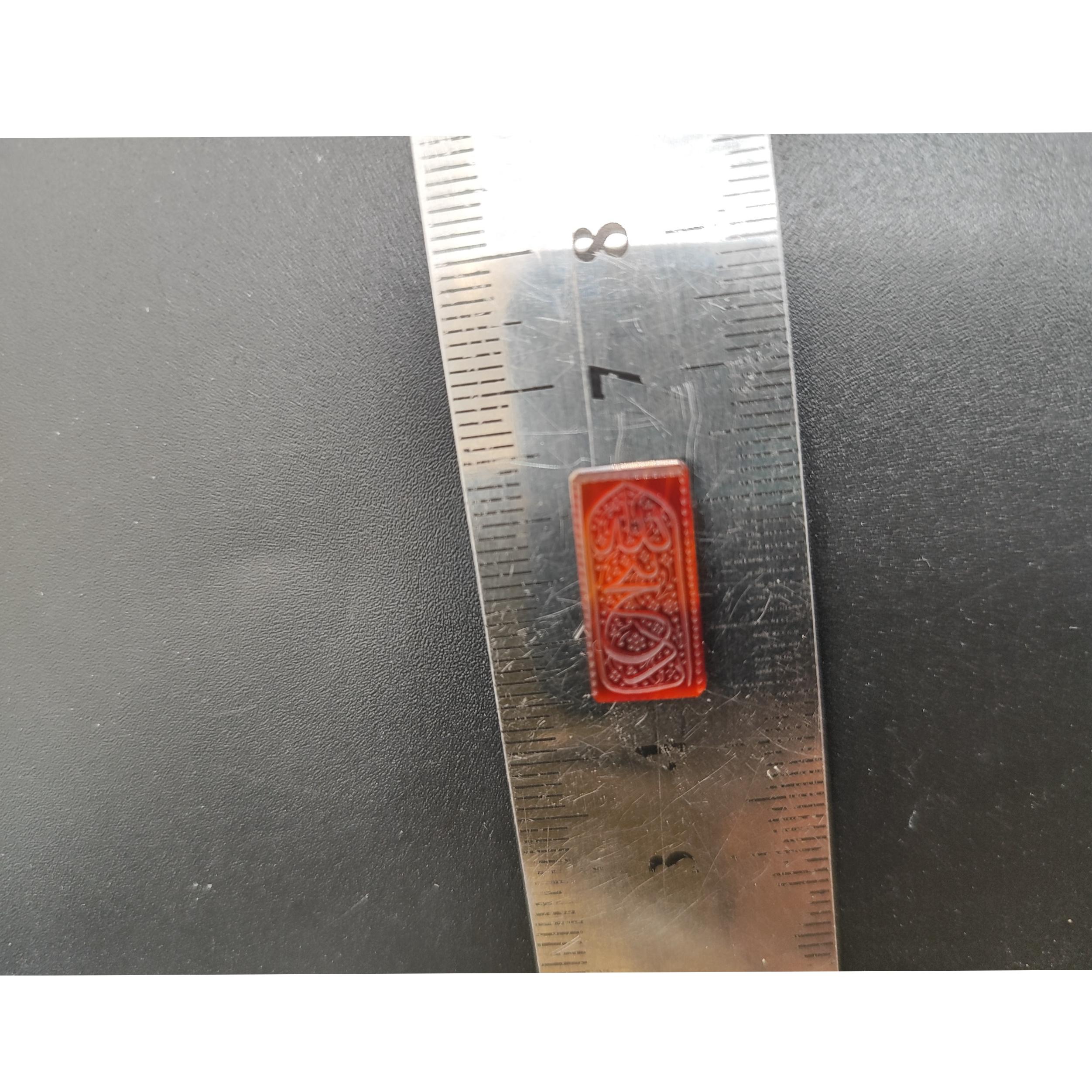 یک عدد عقیق نارنجی ، یمن با نوشته حسبی الله طرح و دستخط با دست نوشته شده بسیار ظریف