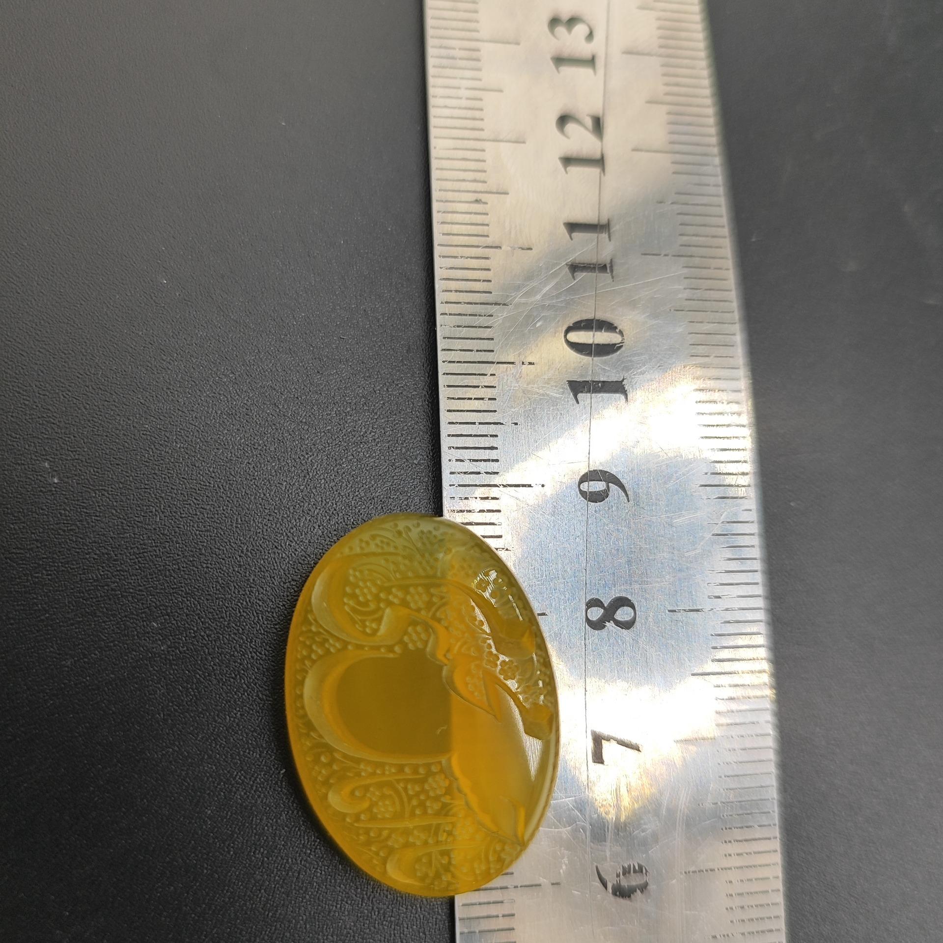 نگین عقیق زرد با خط نوشته ی دست یا حسن مجتبی