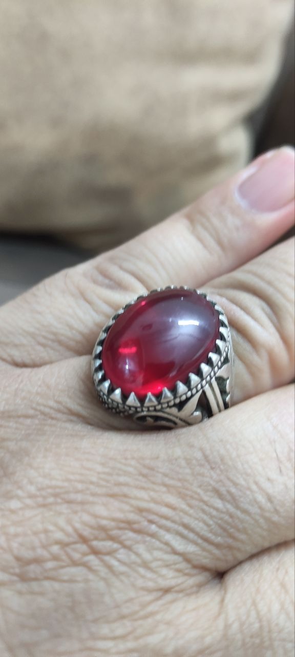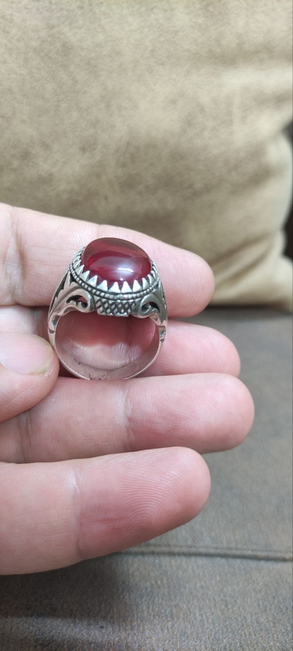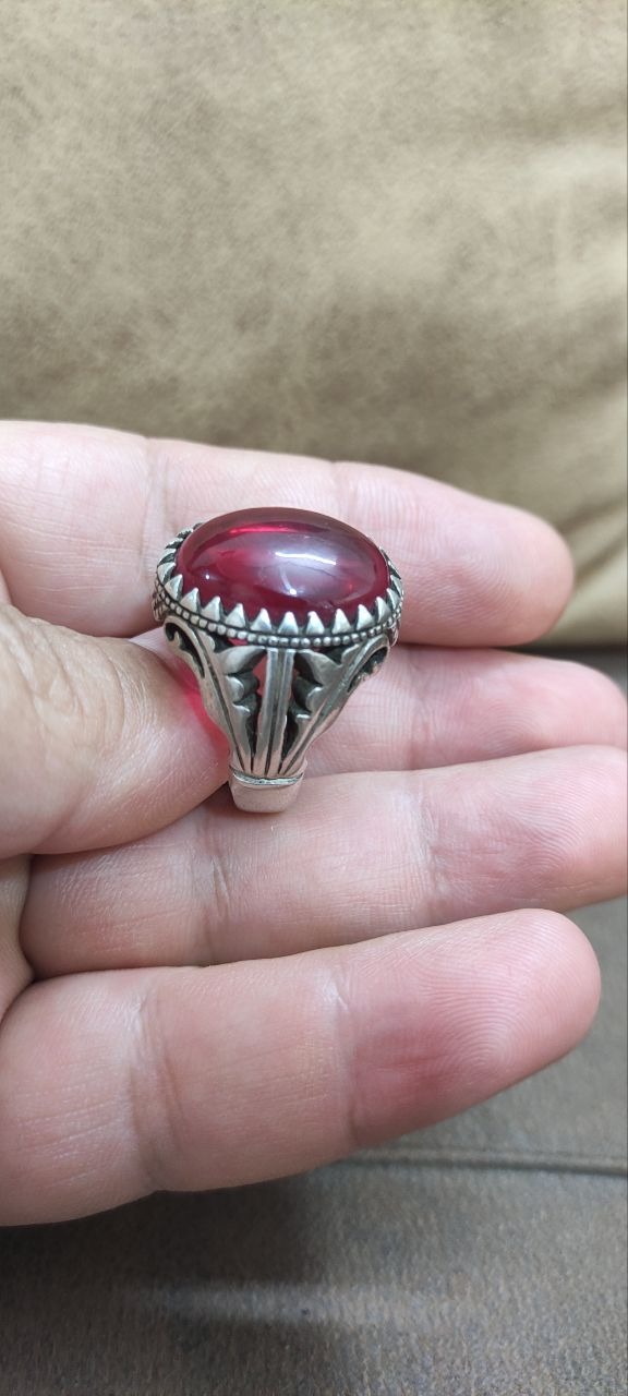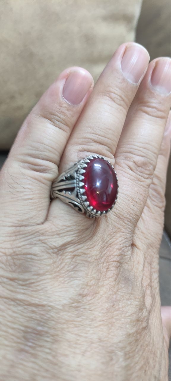 انگشتر یاقوت شمش درجه خور رکاب کاردست حدود 20 گرم نزدیک ب 50قیرات سنگش هستش توعکس معلومه رکاب تمام دست هستش بسیار سنگین و زیبا