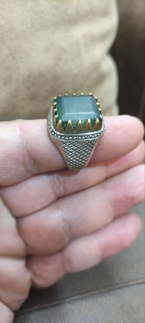 انگشتر زمرد تاج طلا قدیم بامهر اصالت مقدس ب وزن 25 گرم فابریک بسیار زیبا