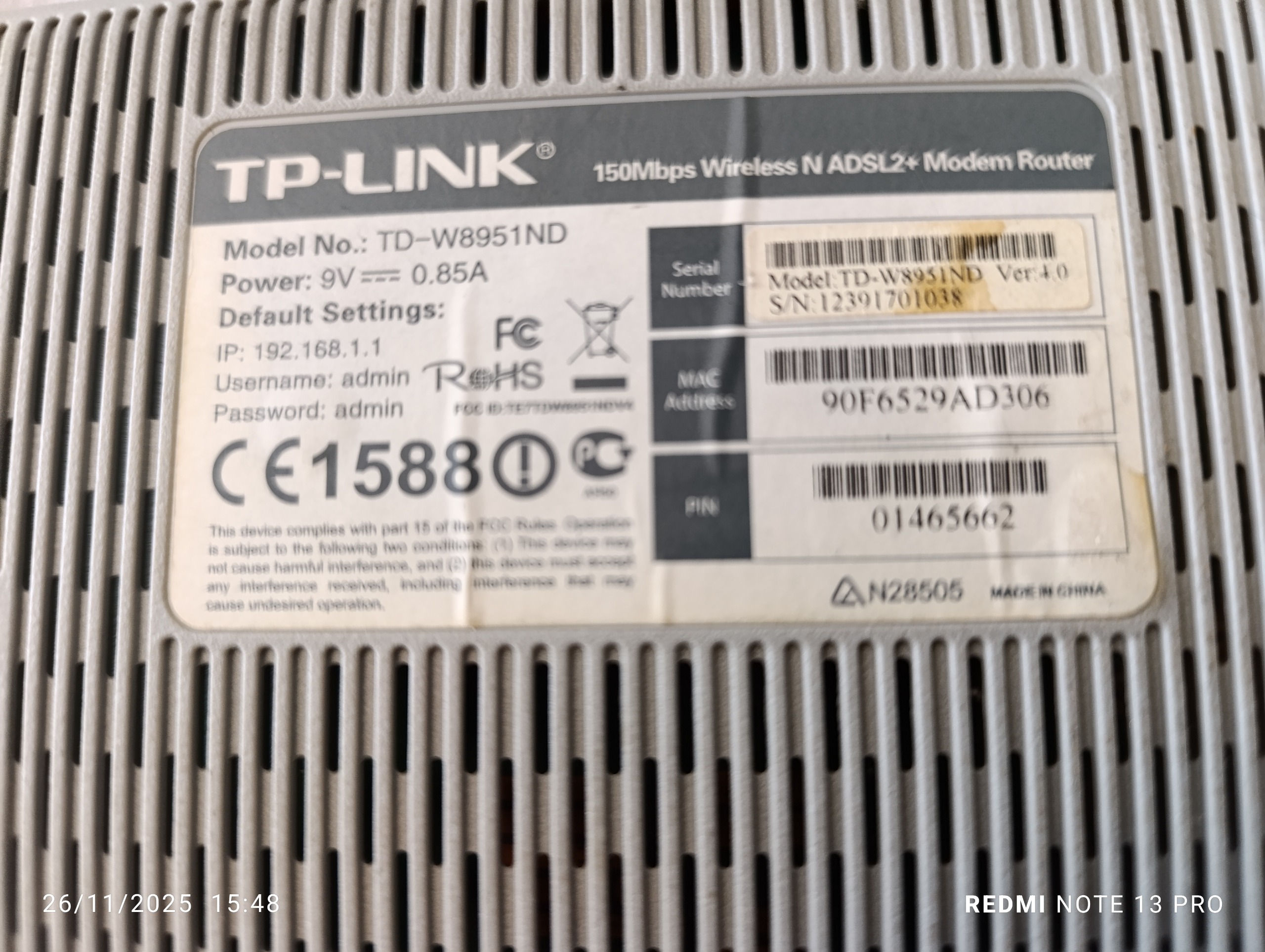 مودم تی پی لینک مدل TD-8151. کاملا سالمه فقط آنتنش آنتن درازه یکم لقه
