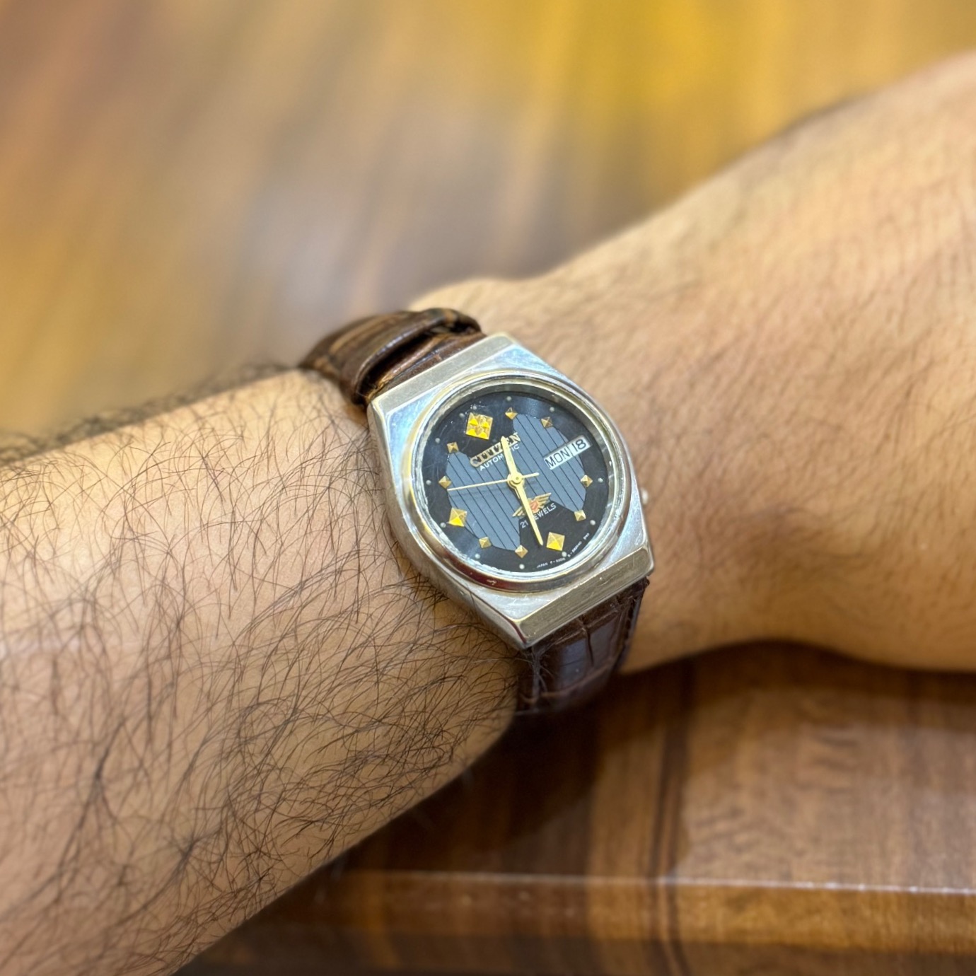 در قلب این ساعت، موتور افسانهای Miyota 8200 میتپد. این موتور اتوماتیک با 21 سنگ قیمتی (21 Jewels) طراحی شده که اصطکاک قطعات متحرک را به حداقل رسانده و عمر موتور را تضمین میکند. فرکانس نوسان آن 21,600 دور در ساعت است که دقت قابل قبولی را برای یک ساعت مکانیکی وینتیج فراهم میآورد. یکی از ویژگیهای متمایز این کالیبر نسبت به رقبای همدوره خود (مانند سیکو 5)، قابلیت کوک دستی (Hand-Winding) در کنار شارژ اتوماتیک است. نمایشگر روز و تاریخ (Day-Date) با قابلیت تنظیم سریع، کاربری آن را برای استفاده روزمره تکمیل میکند. بدنه تمام استیل ضدزنگ و صفحه مشکی با عقربههای شبنما، ظاهری رسمی و در عین حال اسپرت به آن بخشیده است.