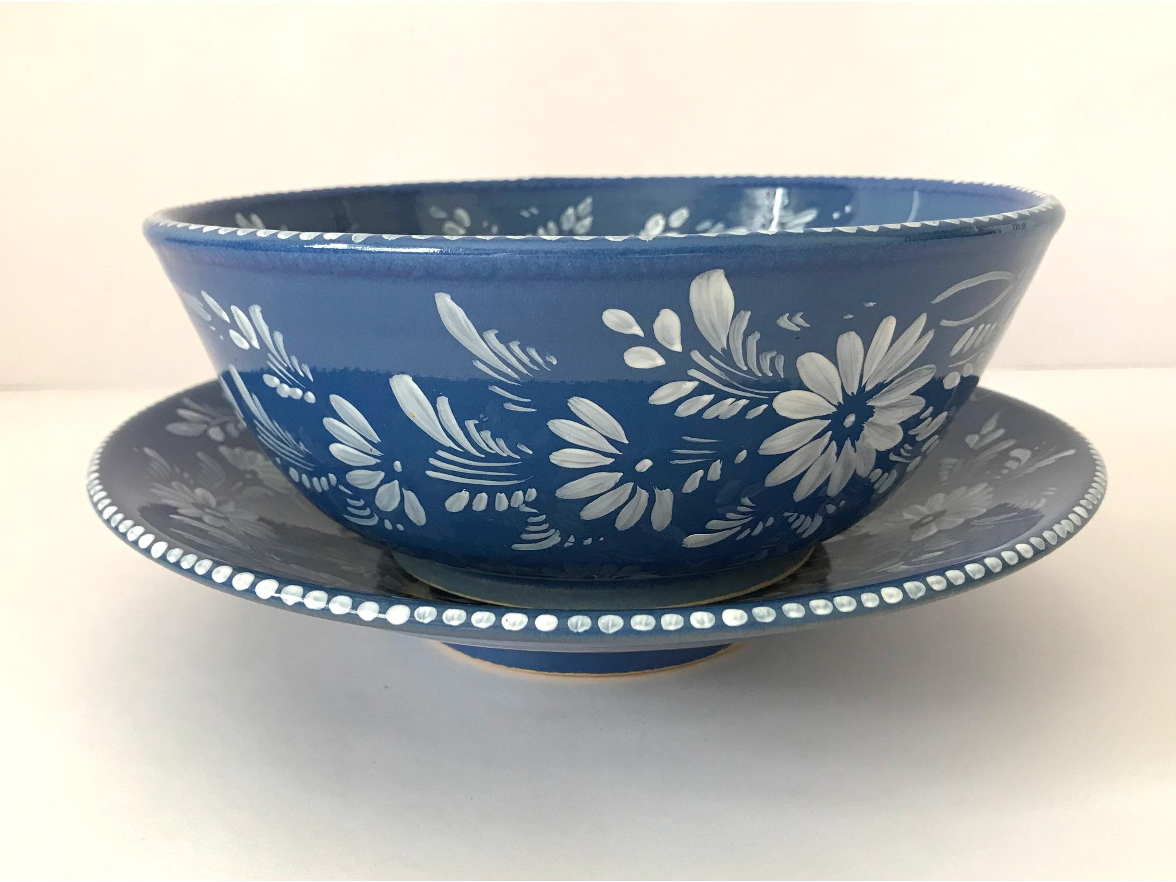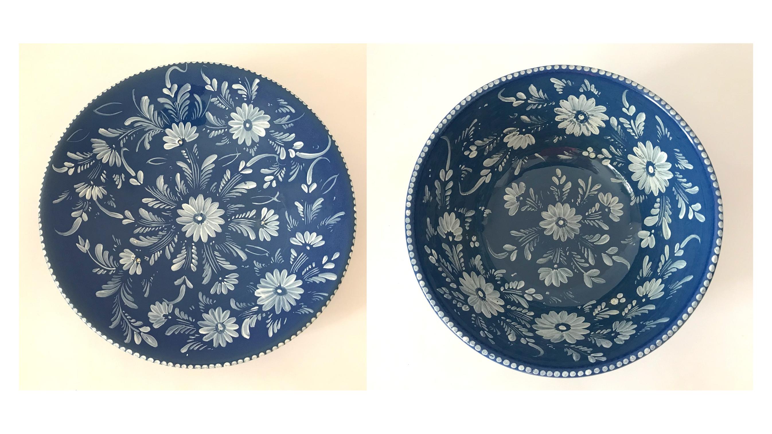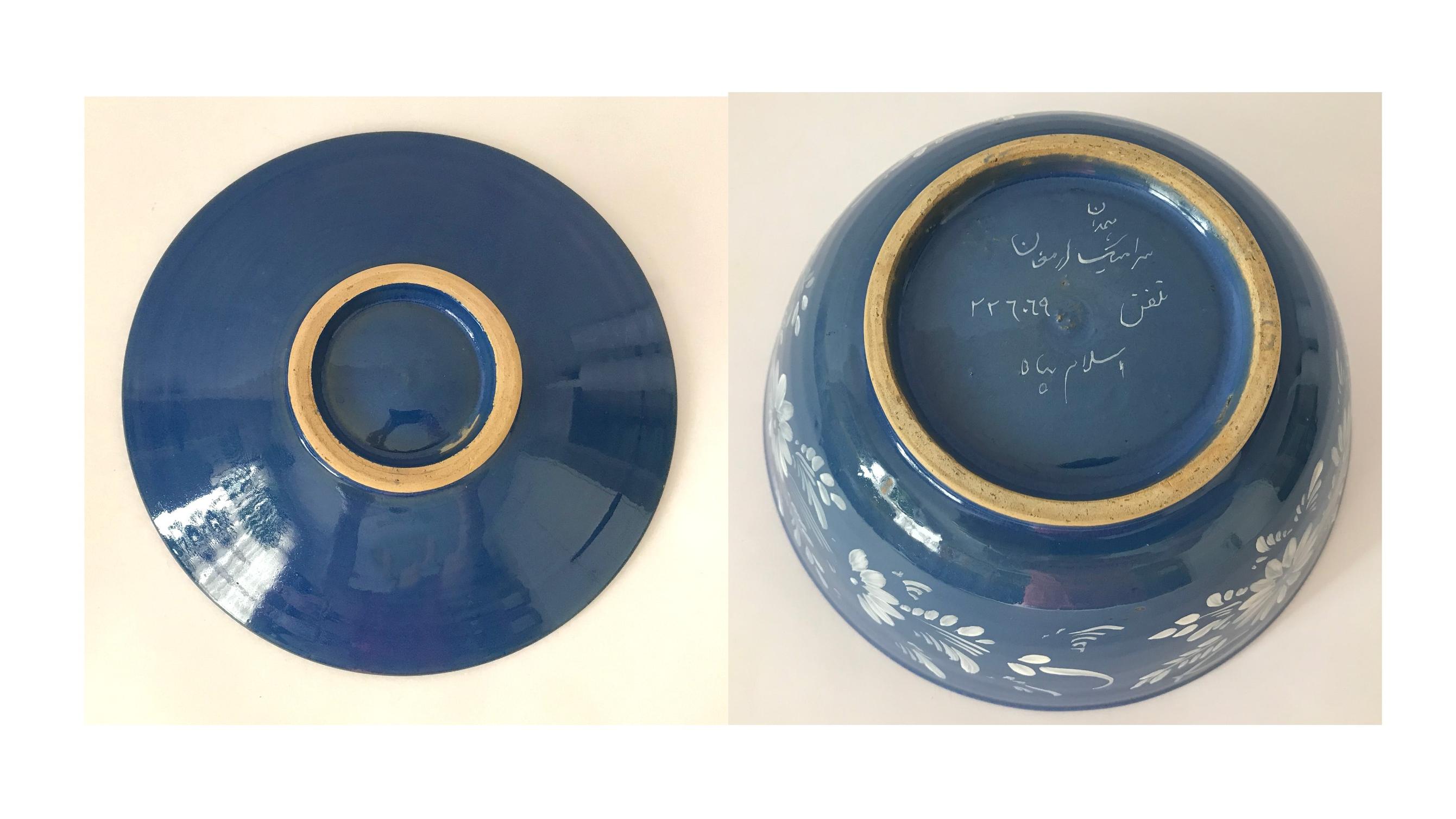 کاسه و بشقاب سفالی همدان قدیمی طرح و رنگ زیبا ، بسیار تمیز و سالم