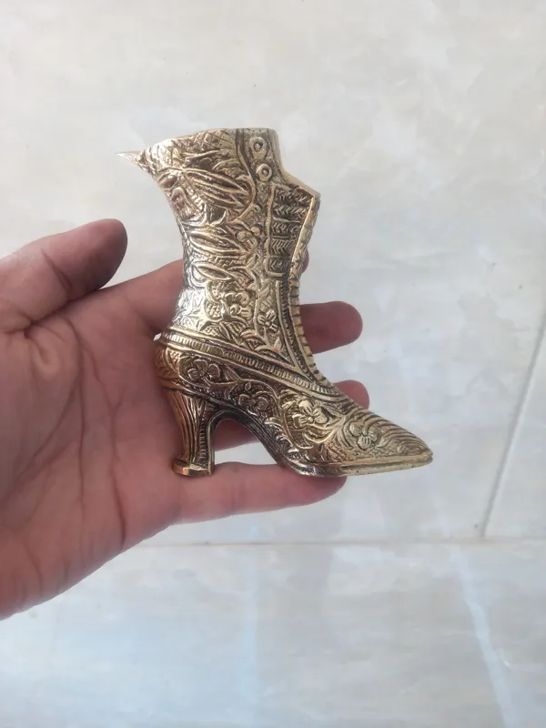 زیرسیگاری تمام برنجی باطراحی بینظیر وخاص دکوری وقابل استفاده اندازه 11سانت تمام قلمکاری شده طرح کفش