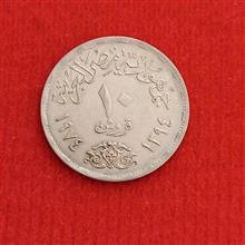 آیتم 16 - 826 _ سکه 10 قروش یادبودی 1974 مصر ، بانکی ، کمیاب قیمت 600 تومان.