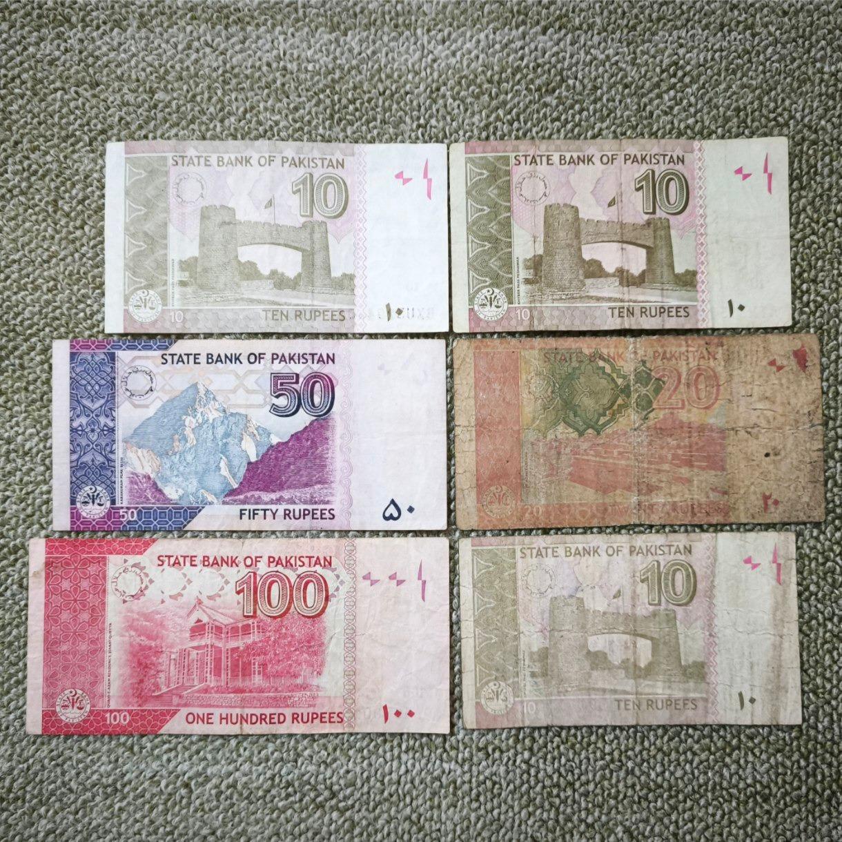 شش برگ اسکناس روپیه پاکستان مطابق تصویر، قیمت برای هر شش برگ با هم است.