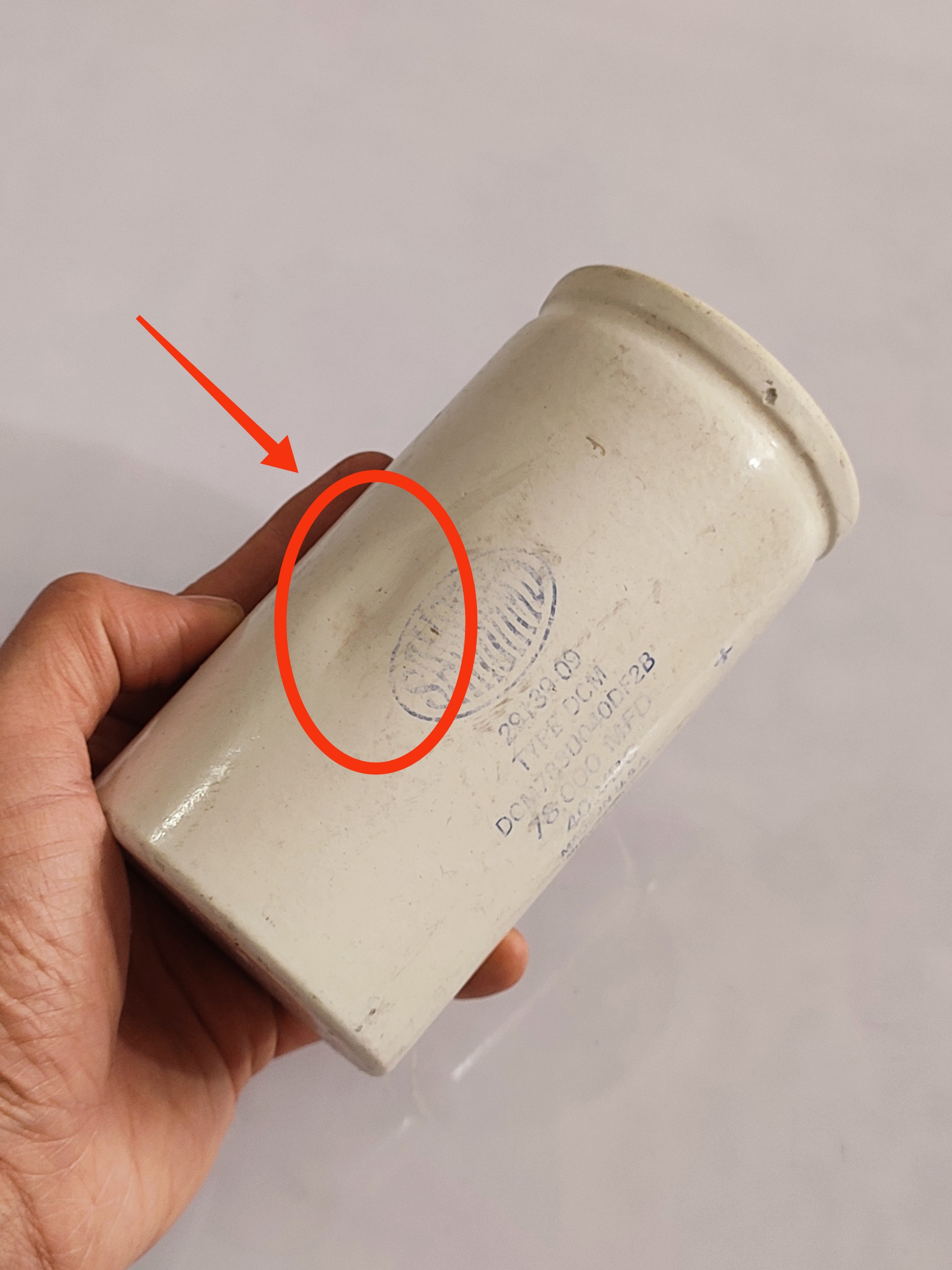 تنها یک فرورفتگی جزئی (در عکس مشخص شده) که کاملاً ظاهری است و به عایق یا عملکرد آسیبی نرسانده است.