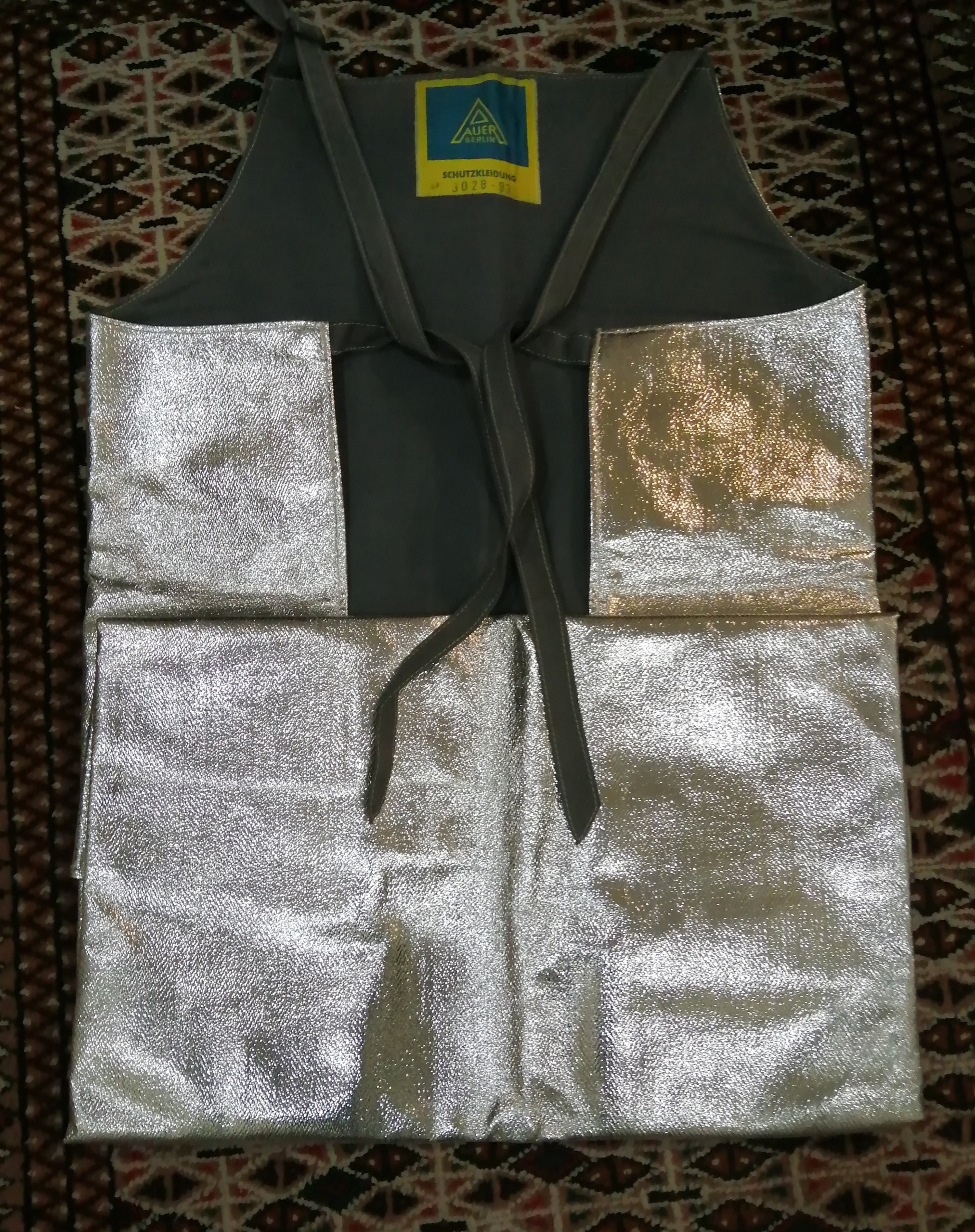 این پیش بند برای کار در مقابل کوره و شعله با باربکیو مناسب است. بسیار ضخیم و مقاوم در برابر حریق و حرارت است. ساخت کارخانه AUER برلین آلمان می باشد. تا به حال استفاده نشده ولی چون در انبار بوده، یکی دو تا لک روش افتاده. برای همین با این قیمت به فروش میرسد. قیمت اصلی اش بالای 50 یورو هست.