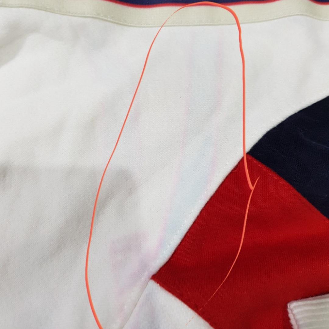 طبق عکسه چهارم و پنجم رو آستین و پشت آستین ها چاپ رنگ گرفته به سوییشرت پایینه سوییشرت و پشتش خیلی کمتره بیشتر رو آستین ها این مورد رو داره