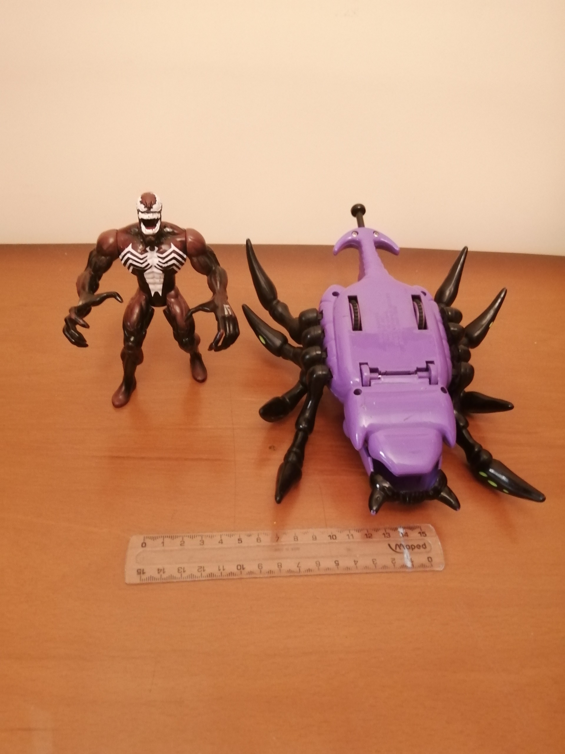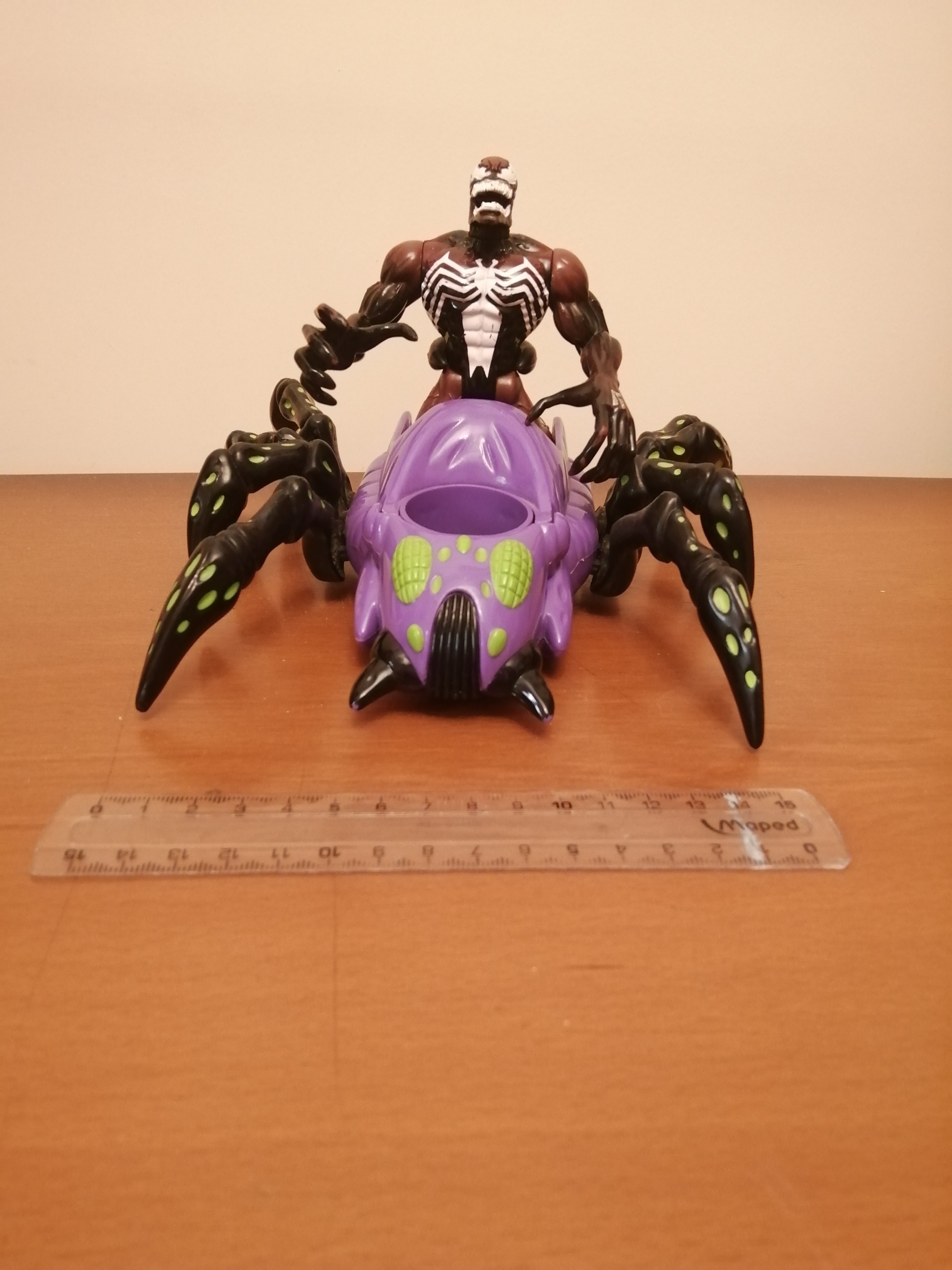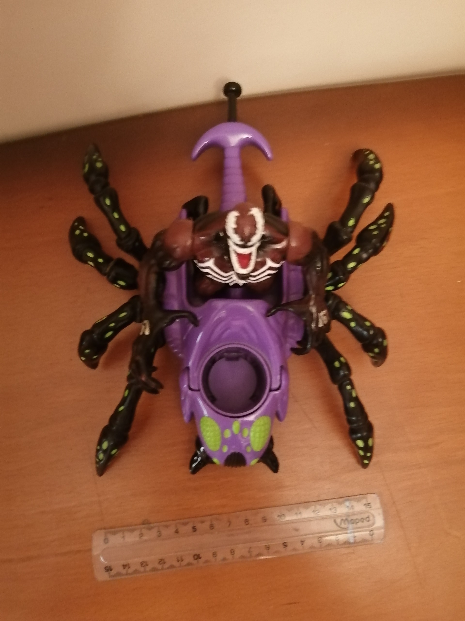 این فیگور چند سال قبل از خارج آورده شده و نمونه مشابه در ایران ندیدم. فیگور دارای قابلیت حرکت در مفاصل هست. ارابه عنکبوتی هم وقتی حرکت داده میشه دست و پاها بالا و پایین می رود. قابلیت پرتاب دیسک هم دارد. دیسک ها و زبان فیگور گم شده است برای همین قیمت را کم گذاشتم.