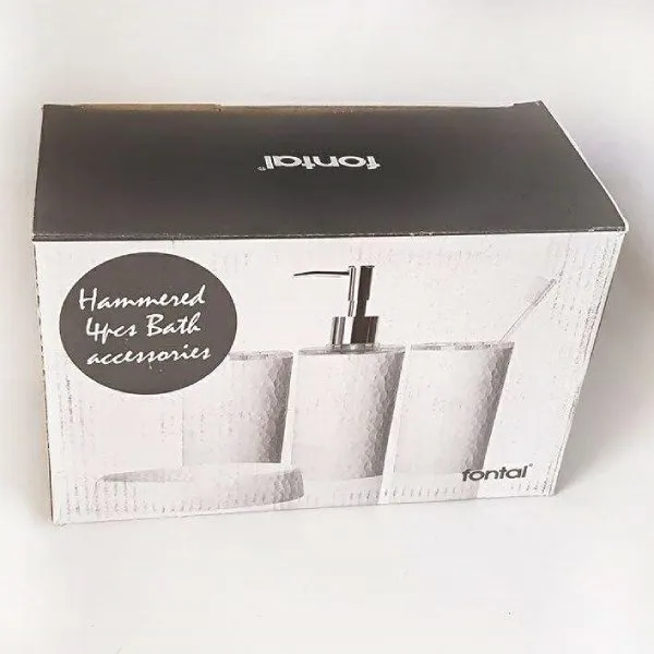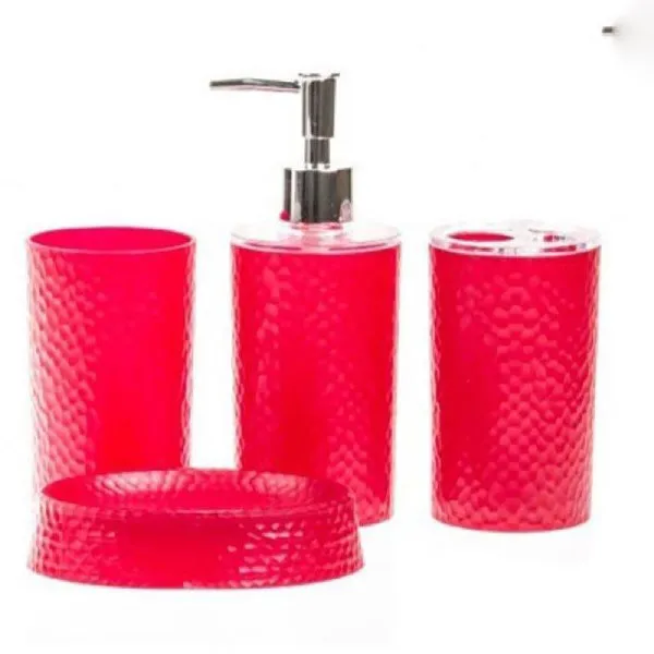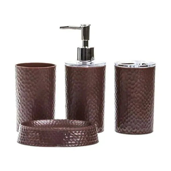 • 4 تکه اصلی : جا مسواک و خمیردندان ، جای مایع دستشویی پمپی ، جا صابونی و لیوان آب
