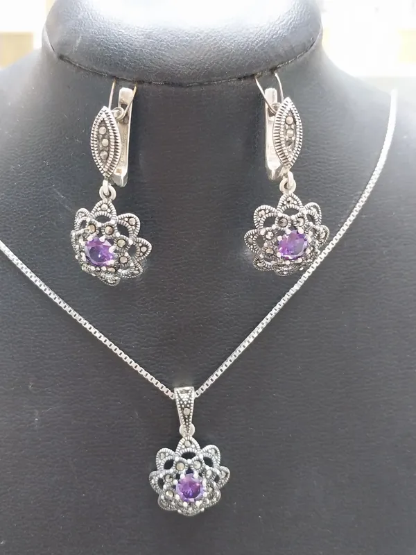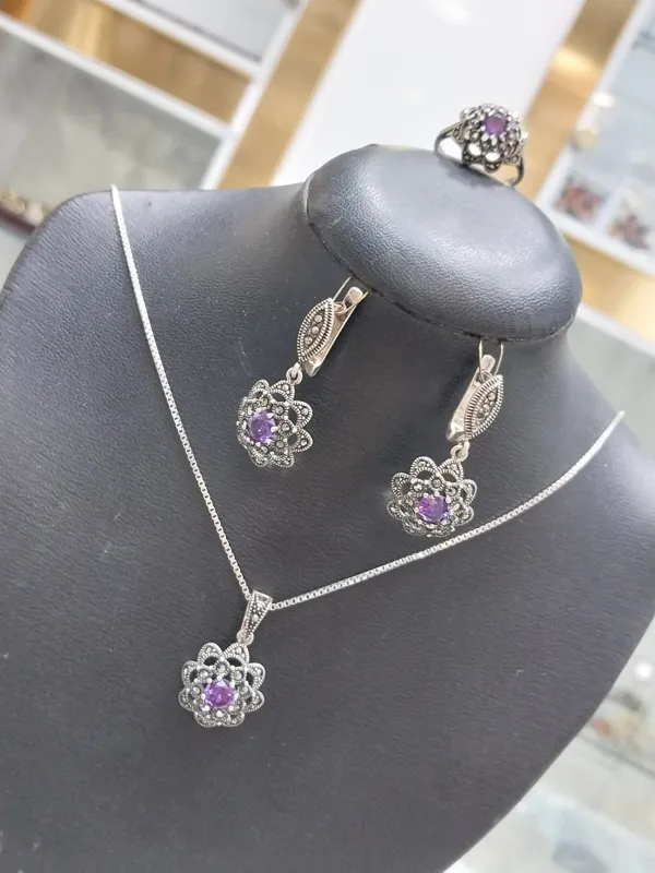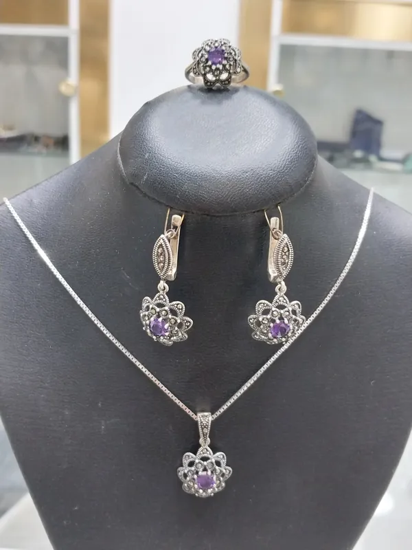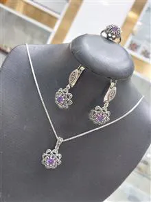 نیم ست نقره925 نگین آمتیست بافاکتور